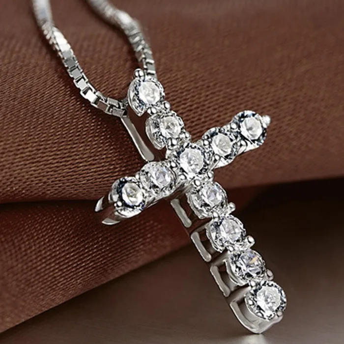 Женский крест хрустальные подвески ожерелье блестящая цепочка Подарочные ожерелья украшения