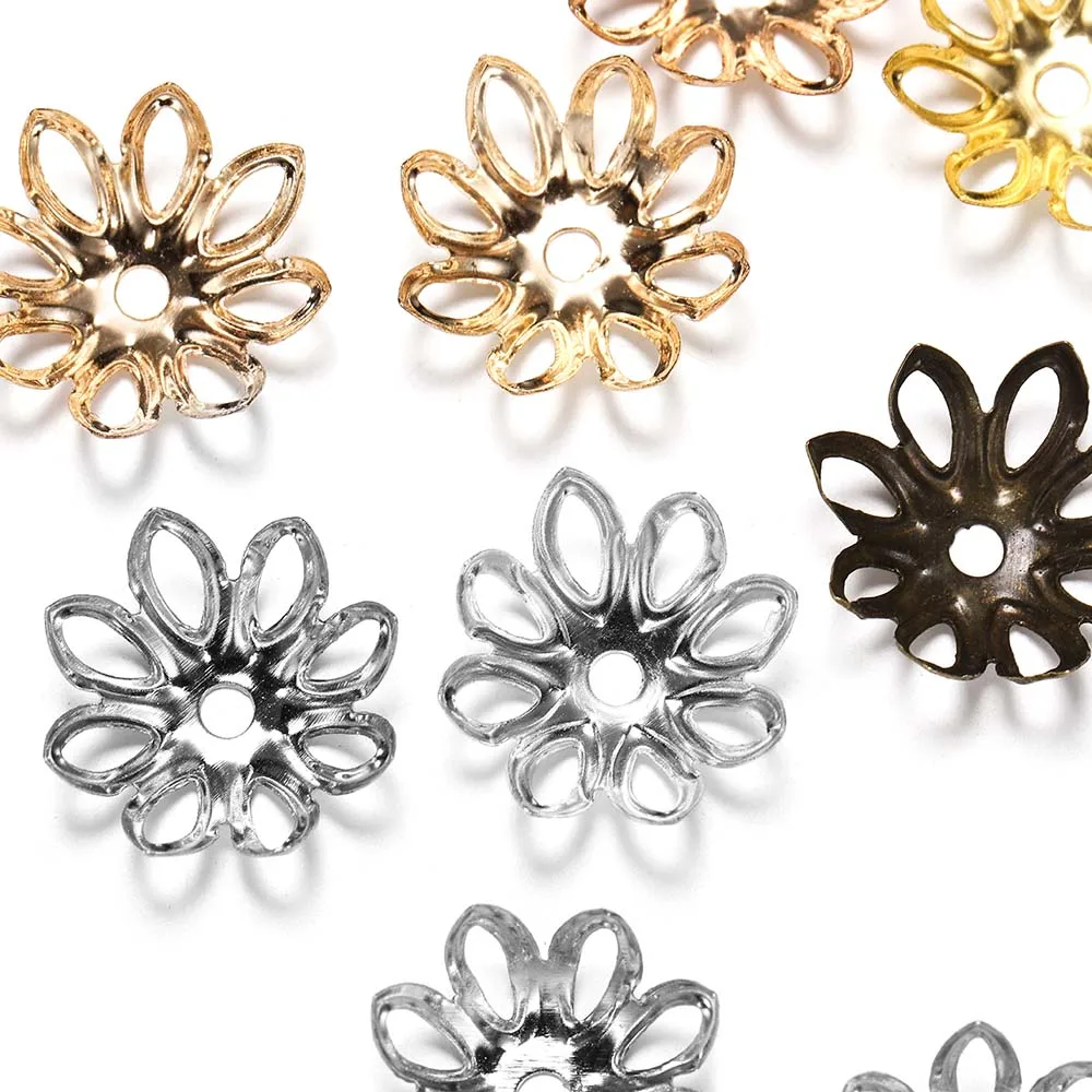 100 шт./лот Позолоченные Бронзовые бусины в форме торуса в форме цветка, Полые бусины-разделители, Концевая крышка для изготовления ювелирных изделий своими руками