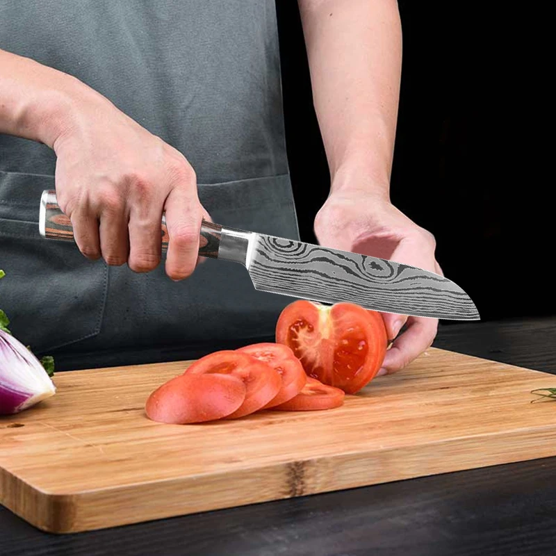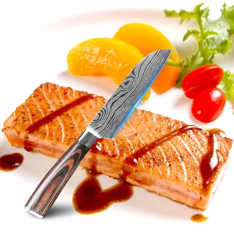 Японские кухонные ножи, лазерный дамасский узор, нож шеф-повара, острый нож сантоку, ножи шеф-повара, инструменты