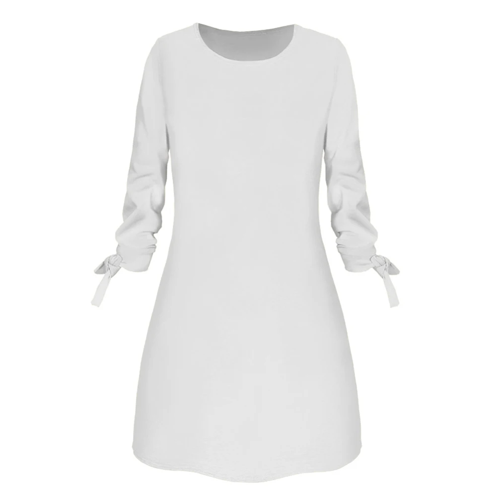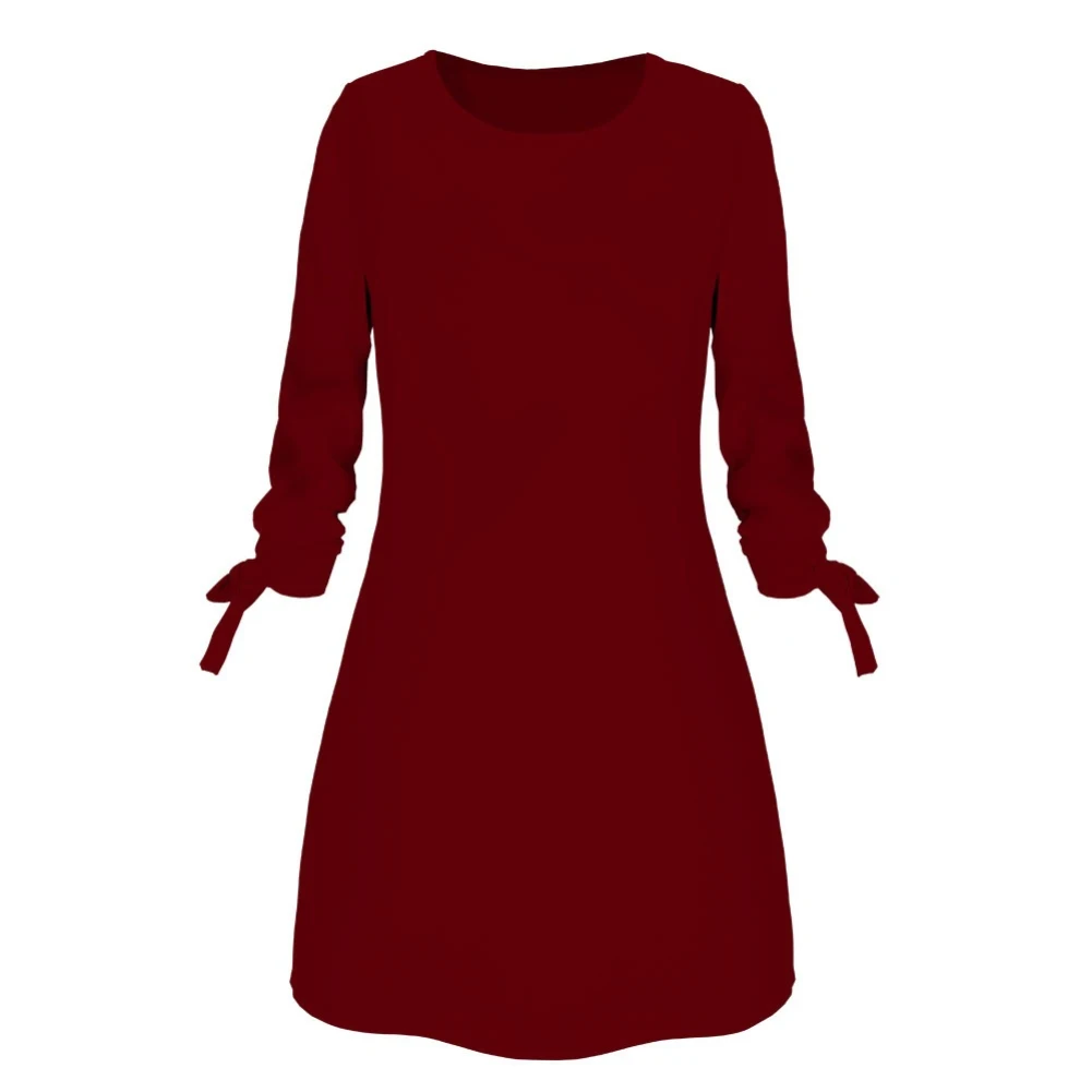 Повседневное женское осеннее однотонное мини-платье с круглым вырезом и рукавом 3/4 на завязках