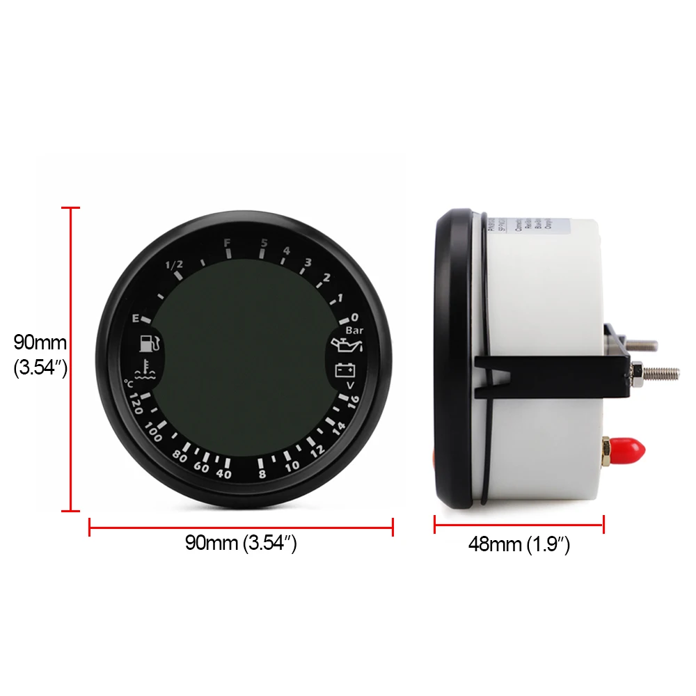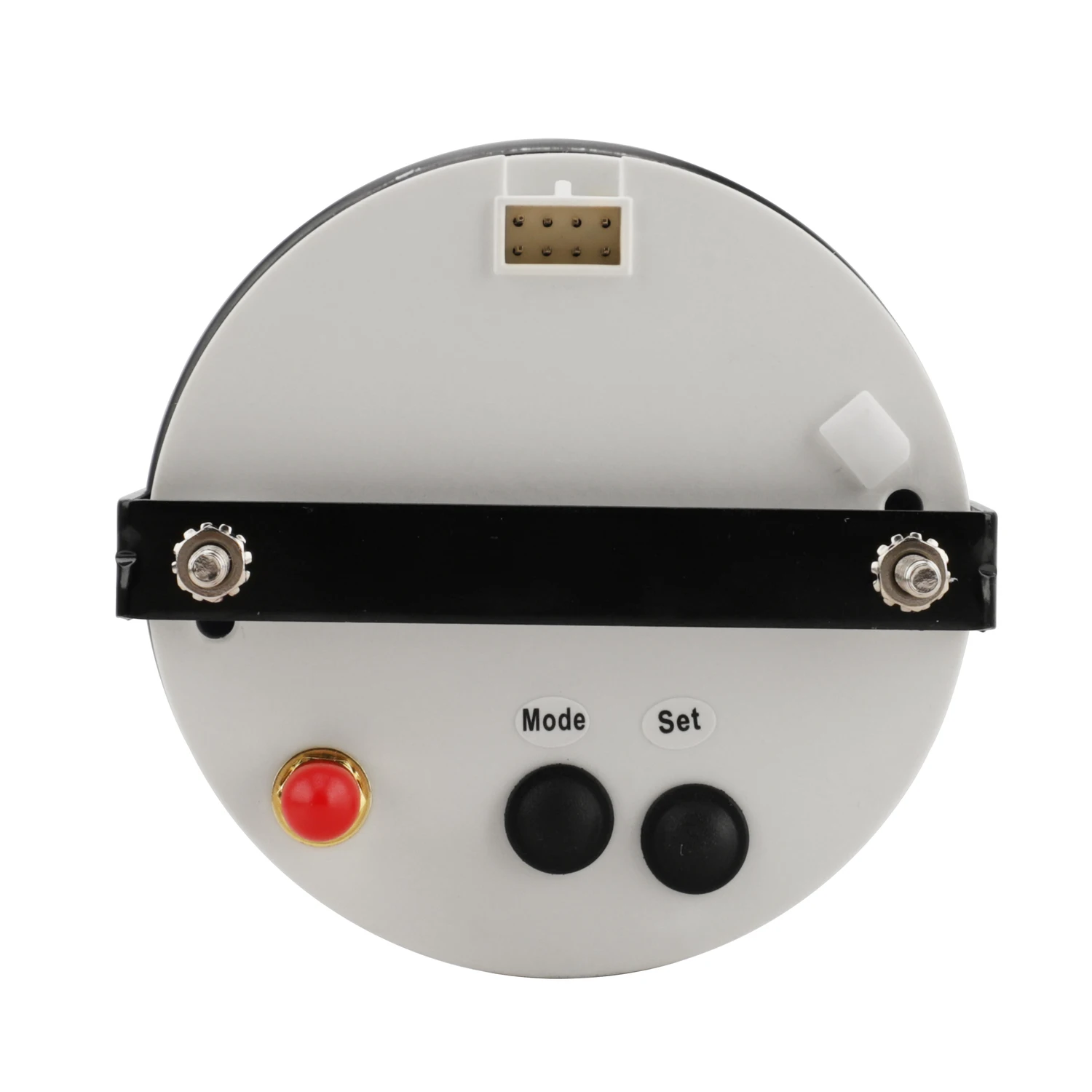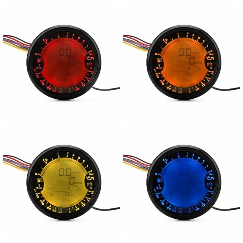 Характеристики продукта: -Цвет: белый -7 с аккумулятором, Трехцветная подсветка Спираль стиль прост в установке и водонепроницаемый, может быть использован в воде. -Датчик имеет преимущества высокой точности, быстрого подтверждения местоположения и короткого времени запуска. -Класс водонепроницаемости и защиты от пыли IP67 -Шаговые двигатели, используемые для полного диапазона шаговых датчиков, большая особенность с его меньшим энергопотреблением, более долгим сроком службы, более высокой точностью и т. Д. -С изогнутым стеклом (с функцией защиты от запотевания) Технические данные: -Фиксирующий Размер: 85 мм (3-3/8 ") -Диапазон индикации: GPS Спидометр Тахометр Счетчик часов температура воды Уровень топлива давление масла вольтметр -Рабочее напряжение: 8-16 В -Подсветка: красный, оранжевый, зеленый, желтый, синий, фиолетовый, белый (вы можете нажать кнопку, чтобы изменить) -Функции: Диапазон оборотов тахометра: 0-9999 об/мин Диапазон индикации спидометра: 0-999 (км/ч MPH, узлы доступны) Диапазон индикации температуры воды: 40-120 ℃ (104-248) Диапазон индикации манометра: 0-5 бар (0-72.5Psi) Общий диапазон индикации пробега: 0-99999,9 (км милях узлы доступны) Диапазон индикации счетчика: 0-99999,9 Диапазон индикации трипметра: 0-999,9 (км/ч MPH, узлы доступны) Рабочее напряжение: 8-16VDC Рабочий ток:<150 мА Рабочая температура:-30 ℃-75 ℃ Температура хранения:-40 ℃-85 ℃ Степень защиты: IP67 -Режим работы: ЖК-дисплей, шаговый двигатель