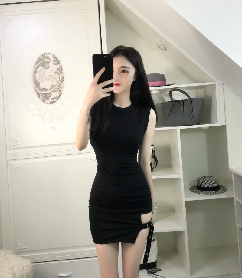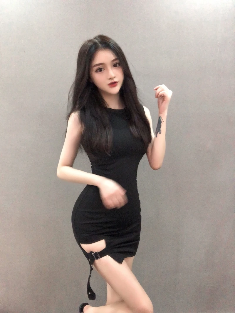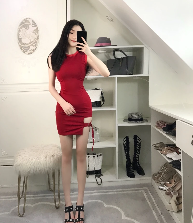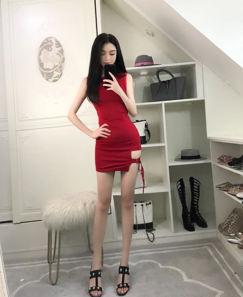 Vintage Gothic Women sexy bodycon dresses brands club Female Sleeveless Black Red mini short Slim Tight dress vestidos DV51