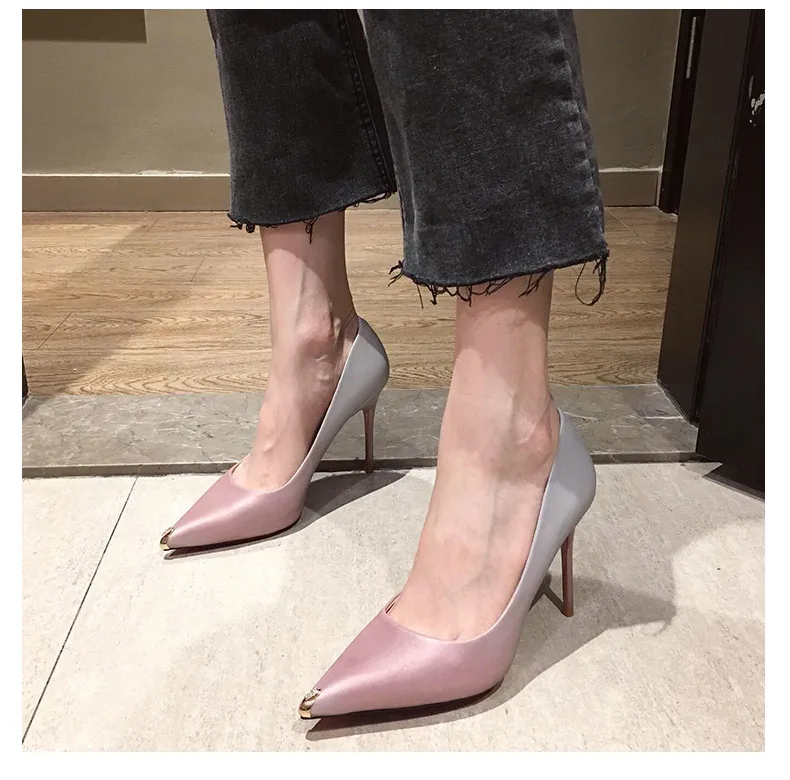 Изящные женские туфли на высоком каблуке с острым металлическим носком красивая женская обувь на высоком каблуке 10 см в сказочном стиле