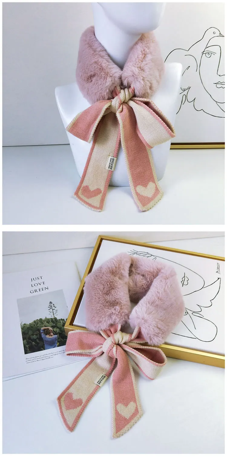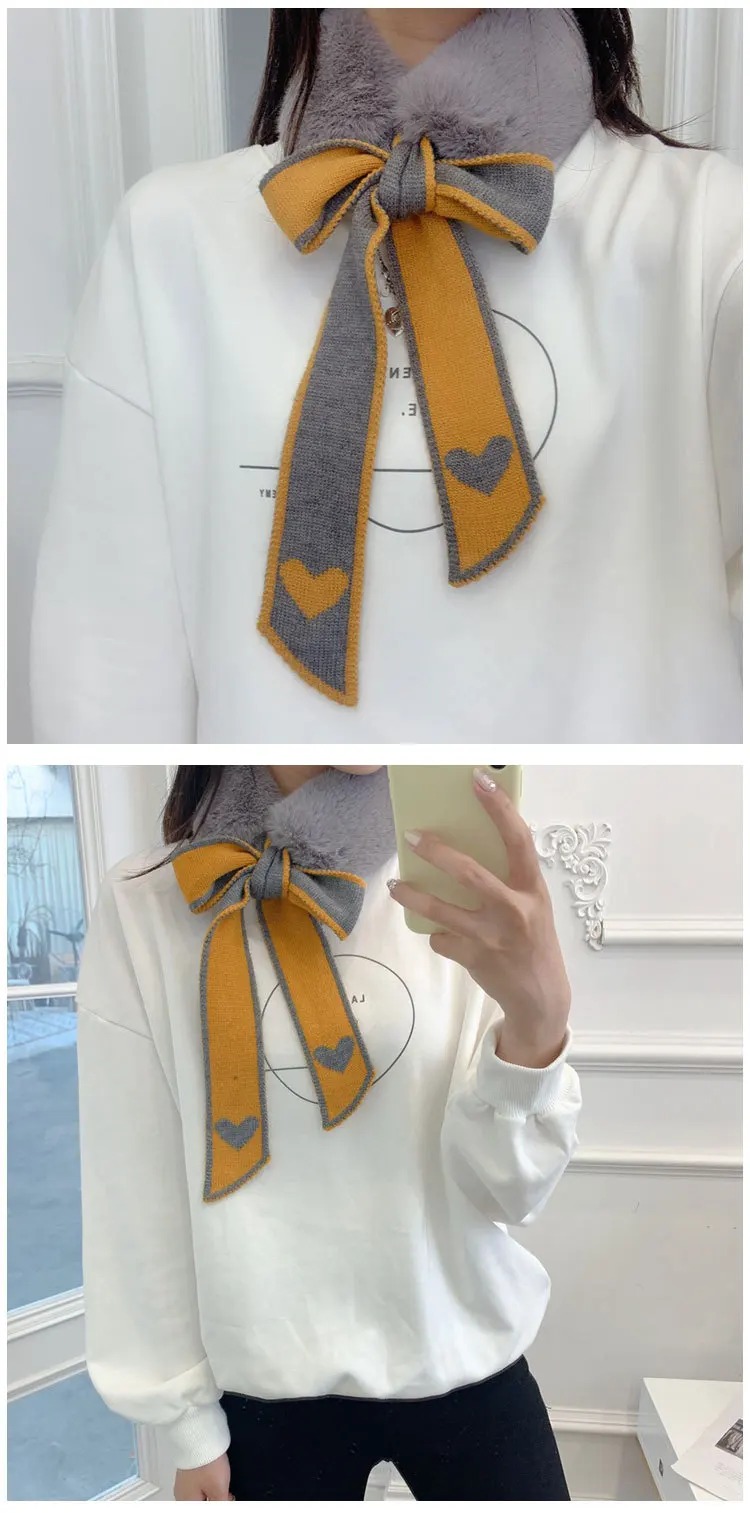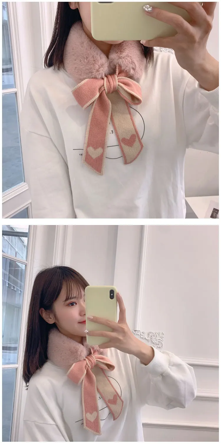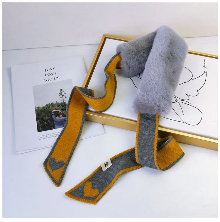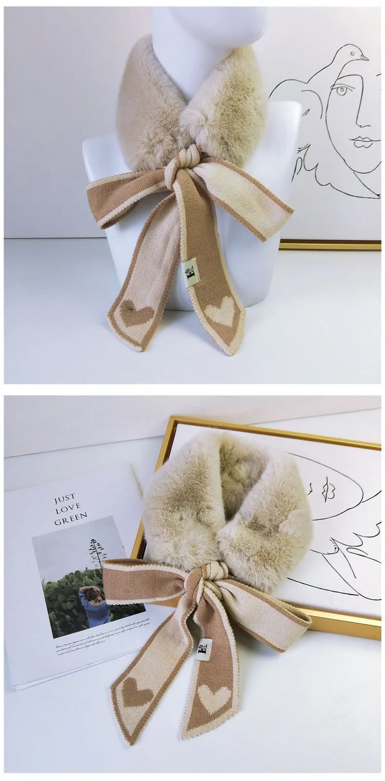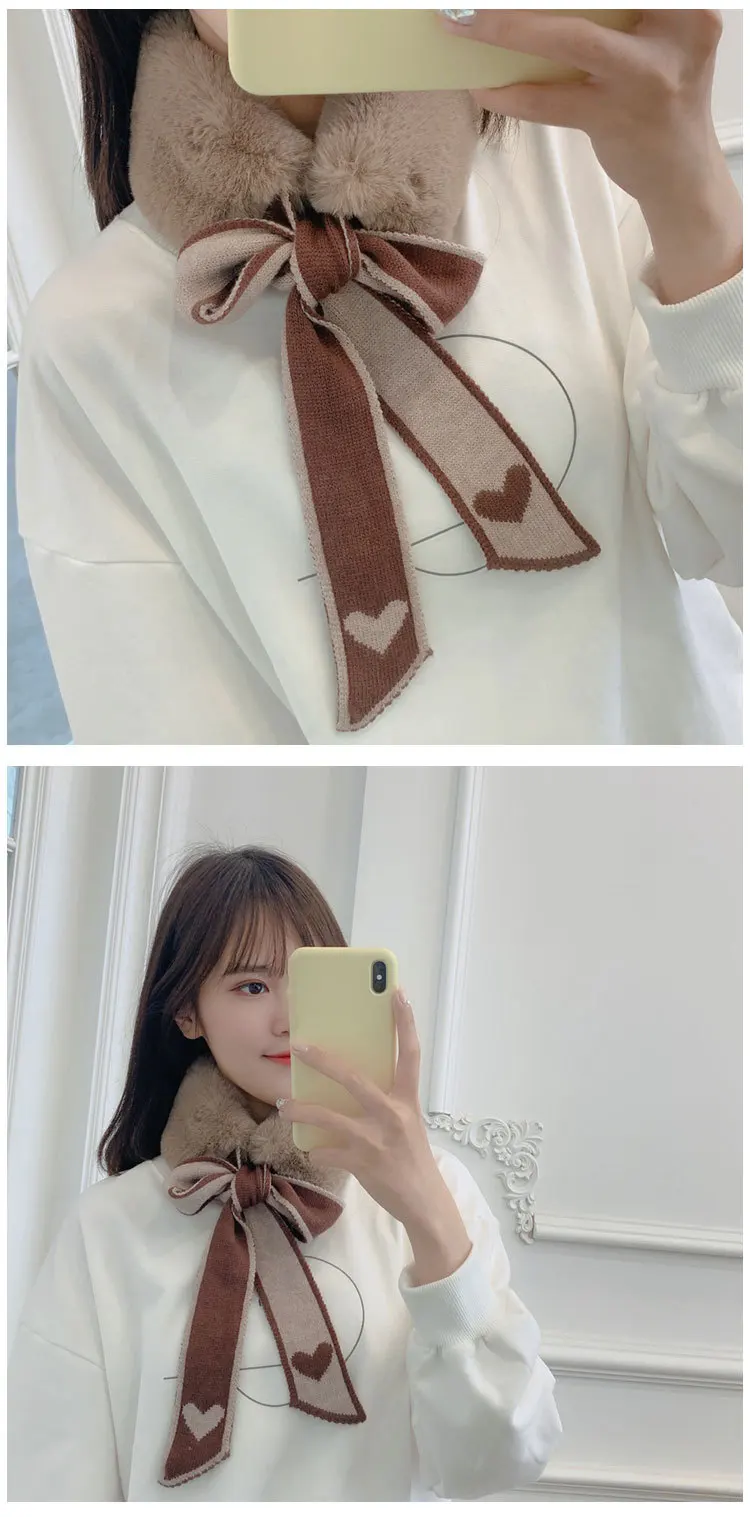 Новый Модный мягкий женский шарф с воротником из искусственного кроличьего меха, плюшевый Шелковый Леопардовый Теплый зимний платок, элегантные женские шарфы для девочек D123