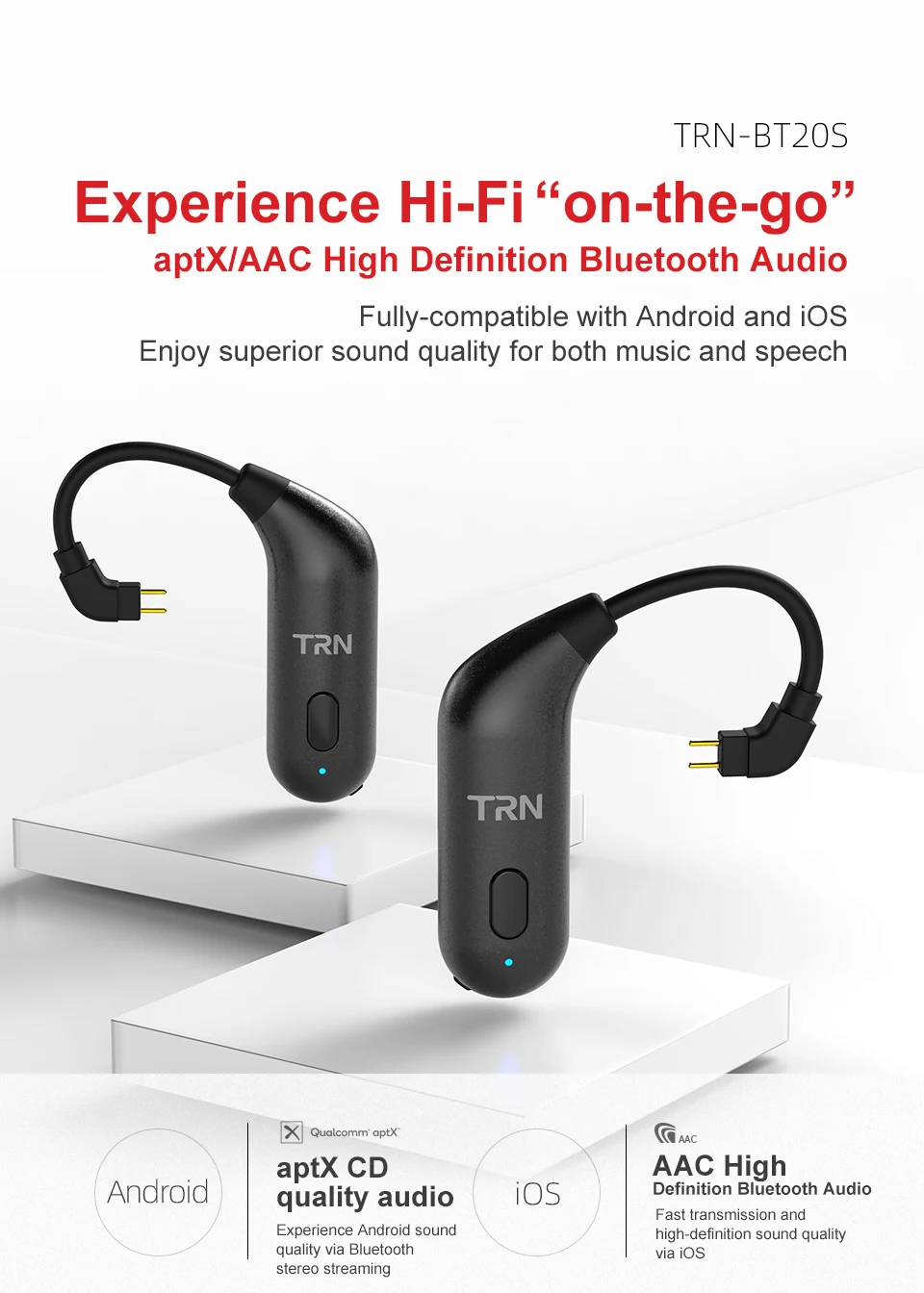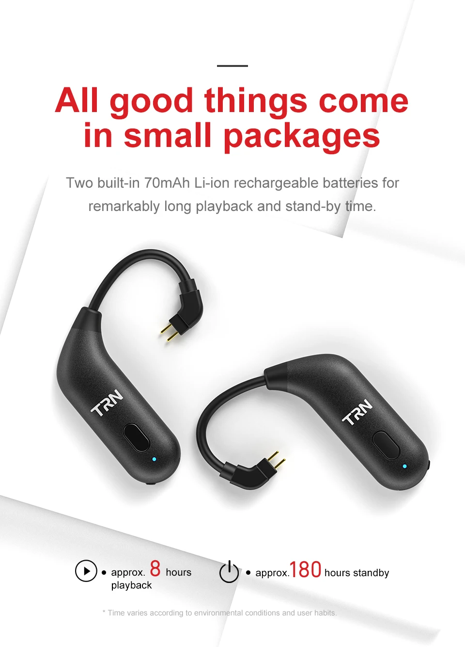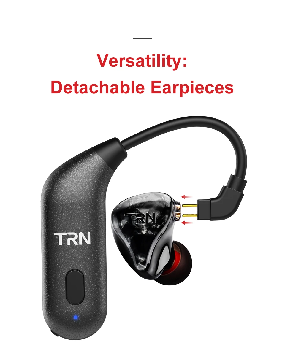 Параметры продукта: Версия Bluetooth: 5,0 Чип Bluetooth: QCC3020 Интерфейс: 2PIN/MMCX Емкость аккумулятора: 100 мАч Время воспроизведения: около 8 часов Эффективное расстояние: около 10 м Время зарядки: около 2 часов Порт зарядки: Micro USB/DC 5 В/60 мА Регулятор громкости: Да С микрофоном: Да Применимые наушники: Использование для UE: UE900 Используется для и т. Д. 2-контактный интерфейс наушников Используется для стандартных наушников mmcx