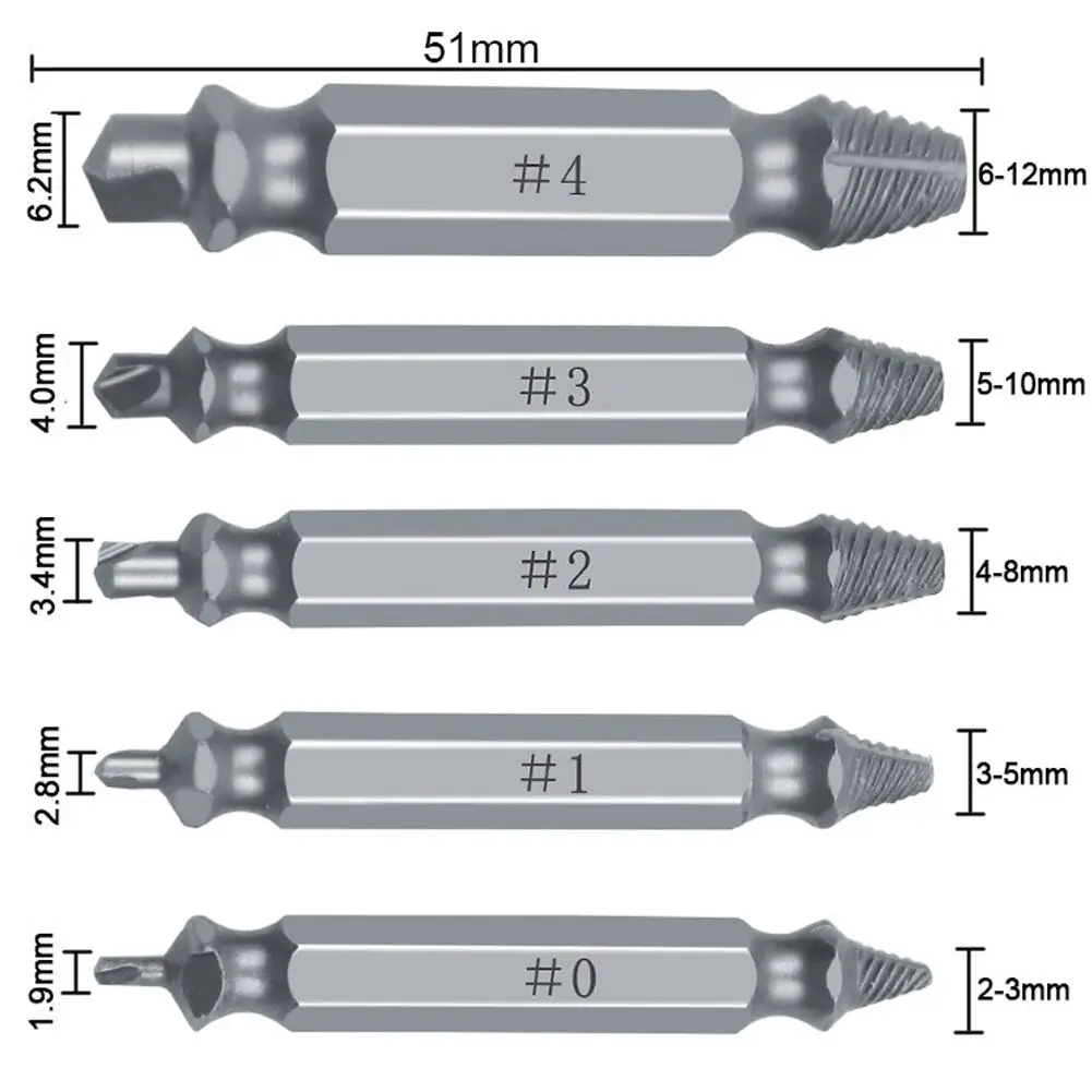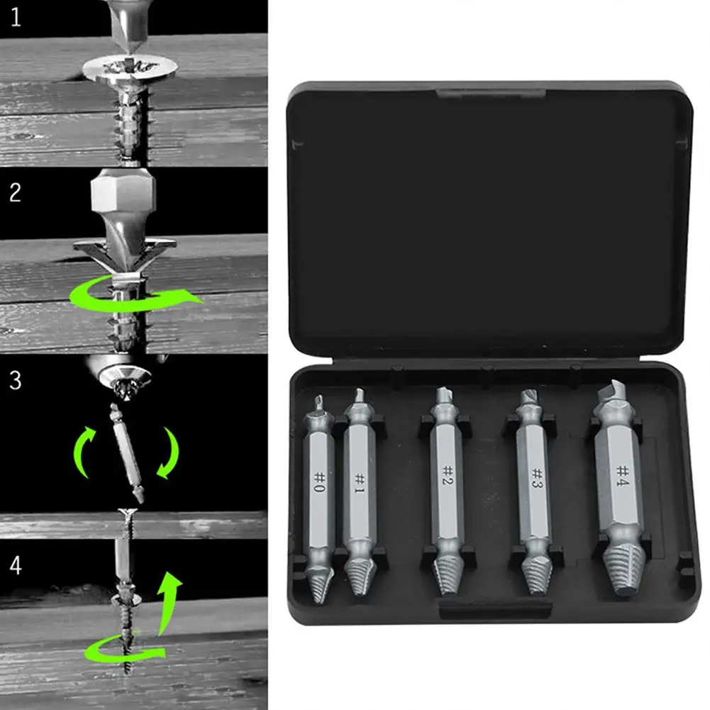 【Винты и болты】5 бит болт экстракторы работает с любой дрели. Он работает на болтах, машинных винтах, болтах ЛАГ, деревянных винтах, шестигранных болтах, винтах из листового металла, закругленных болтах, чтобы назвать несколько. Удаляет даже самые упрямые зачищенные, поврежденные, встроенные, ржавые и окрашенные винты и болты.
