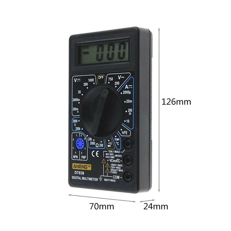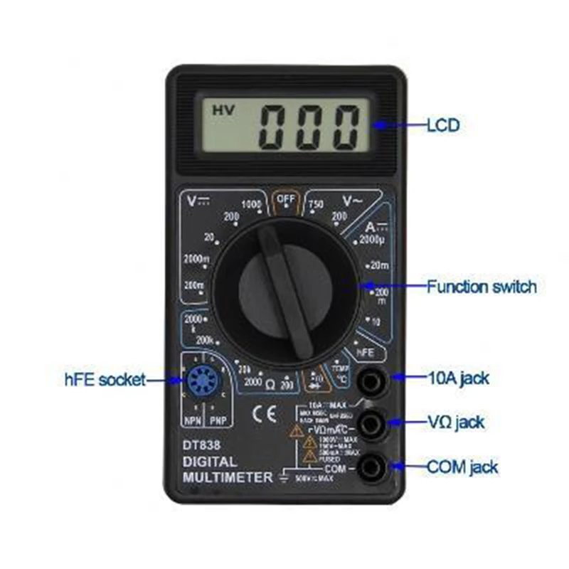 * Защита: предохранитель может эффективно защитить мультиметр, он имеет защиту от перегрузки на всех диапазонах.