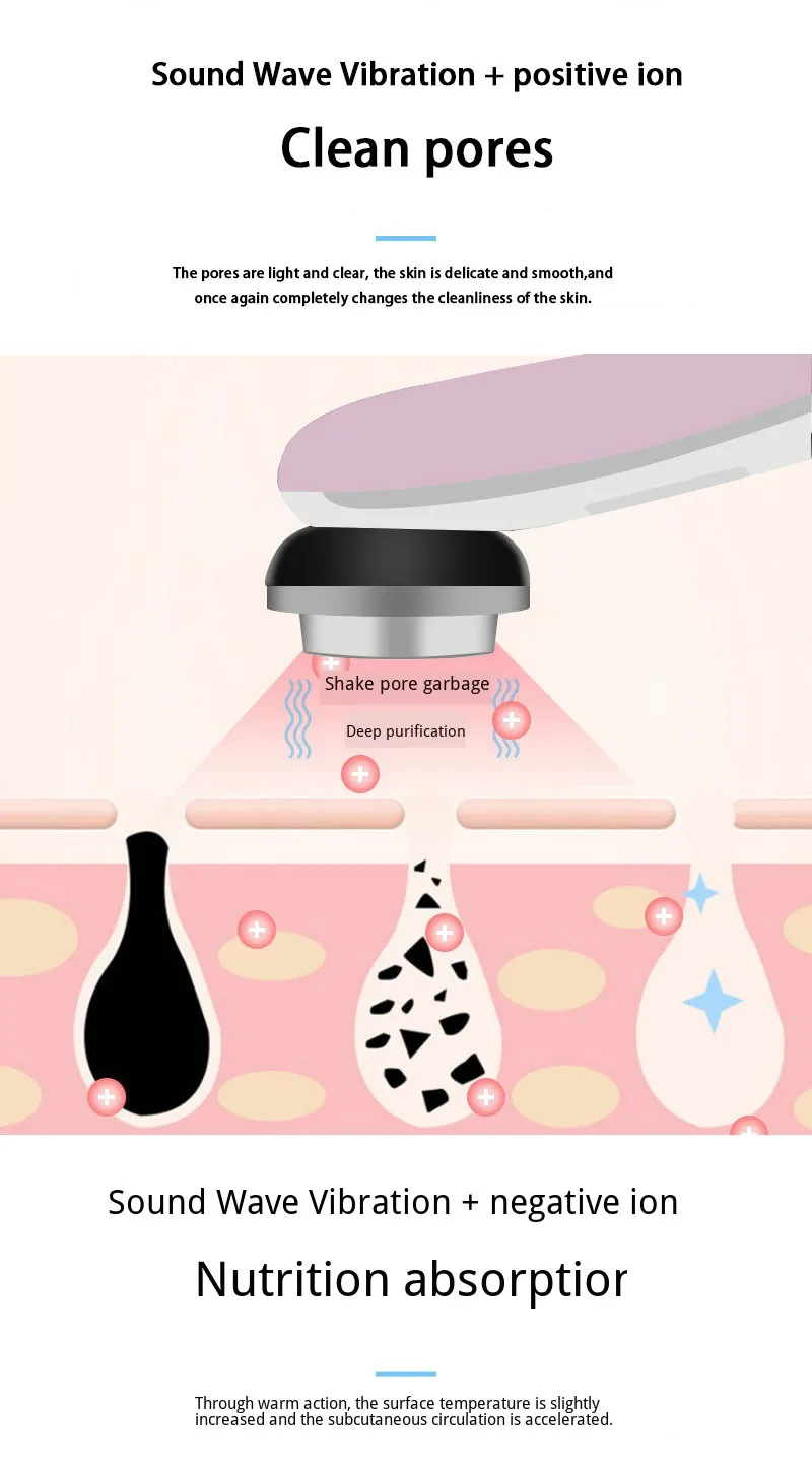 4, the use of sound waves and negative ions to effectively introduce skin care nutrients, accelerate subcutaneous internal circulation;