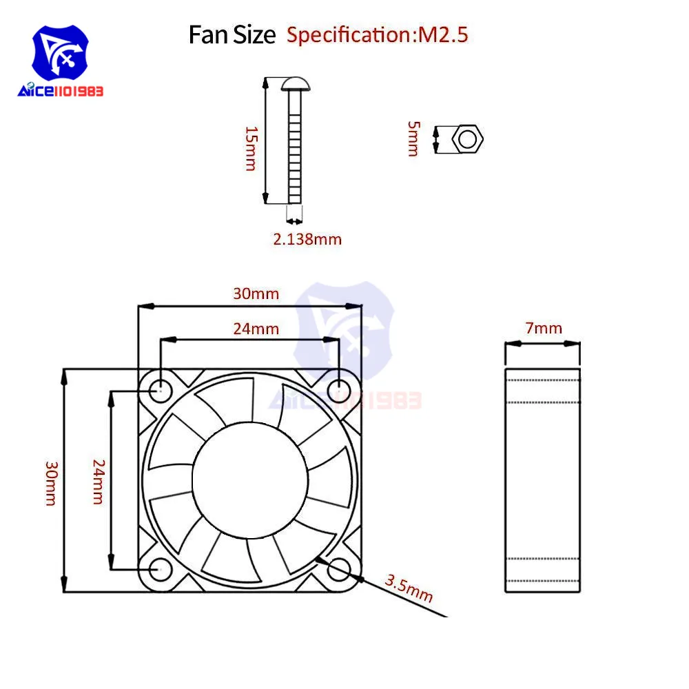 Размер вентилятора: 30x30x7 мм (ДхШхВ)