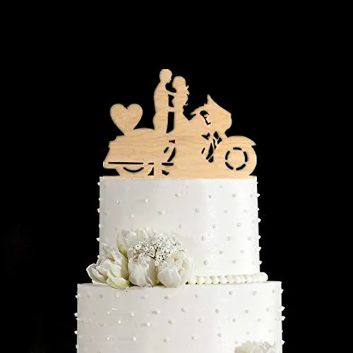 Забавный стиль деревенский деревянный Мотоцикл Топпер для торта акриловый Свадебный Топпер для торта с женихом и невестой свадебное украшение Смешанное