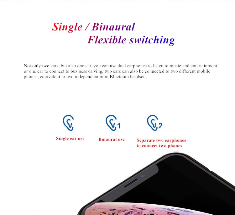 Gx21 Bluetooth 5,0 умные спортивные наушники для бизнеса Название: XG-12 Bluetooth наушники-вкладыши TWS с двойной гарнитура ? Цвет: черный, белый, красный Характеристики динамика: 8 миль от настоящего медного кольца, каучука Сопротивление динамика: 16 Ом Частотная характеристика динамика: 20 Гц ~ 20 кГц ? Номинальная мощность динамика: 3 мВт Динамик 1k Чувствительность: 98db Время в режиме разговора (средний объем): 3 ч Время работы при прослушивании музыки (средний объем): 3,2 h Время в режиме ожидания: 120 ч Чип Bluetooth: BT8832 Версия Bluetooth: 5,0 + edr Расстояние передачи (м): 7-10 метров Расход энергии: 18-22 мАч Входная мощность: 93 МВт Время зарядки наушников: 1 ч Емкость аккумулятора наушников: 55 мА · ч Емкость зарядного аккумулятора: 350 мАч Батарея напряжение: 3,2-4,2 v Содержание энергии литиевой батареи (ватт-часов): 0,203wh Упаковка с двойным ушам, характеристики упаковки: 105*85*35 мм Вес одного изделия: 35,6 г Вес станка: 103 г Аксессуары: руководство, линия передачи данных, ухо