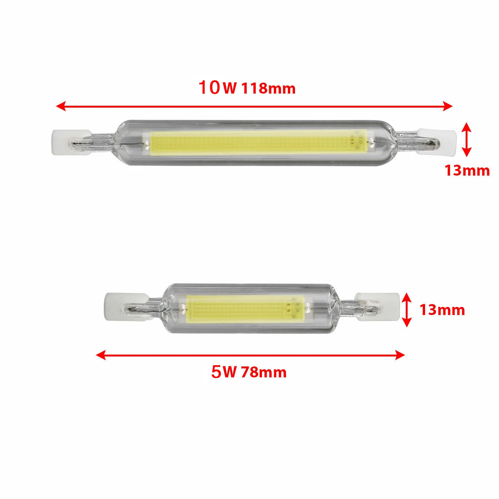 Технические характеристики-5 Вт 78 мм/10 Вт 118 мм R7S двойной светодиодный светильник j типа, угол луча 360 градусов, AC100-130V входное напряжение, 1 шт. супер яркий светодиодный COB s.
