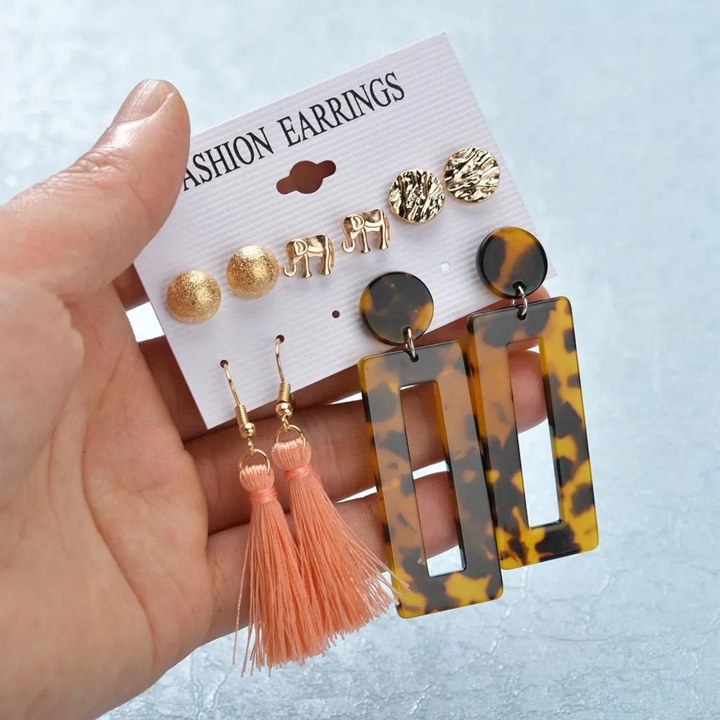 5 пар креативных модных акриловых леопардовых сережек с кисточками в виде слонов