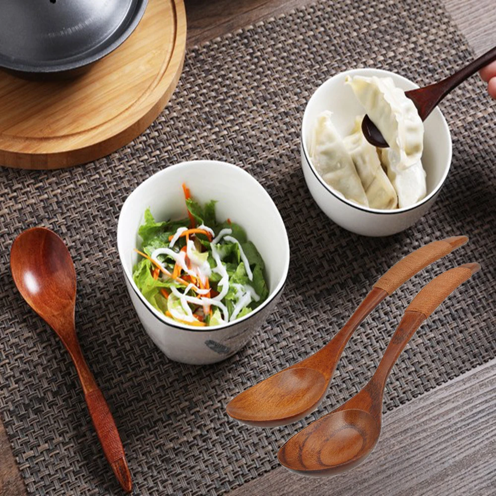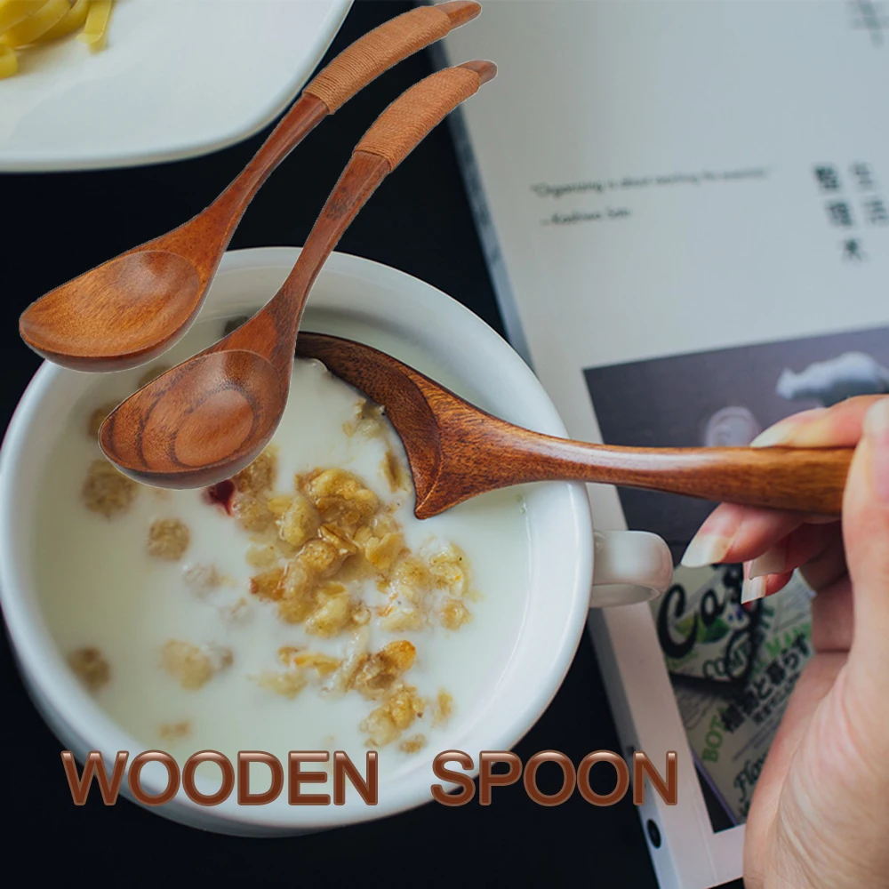 Деревянная ложка, китайская Лаковая посуда, термостойкая деревянная ложка для супа, коричневая, цвета хаки, с ручкой, ложка для супа