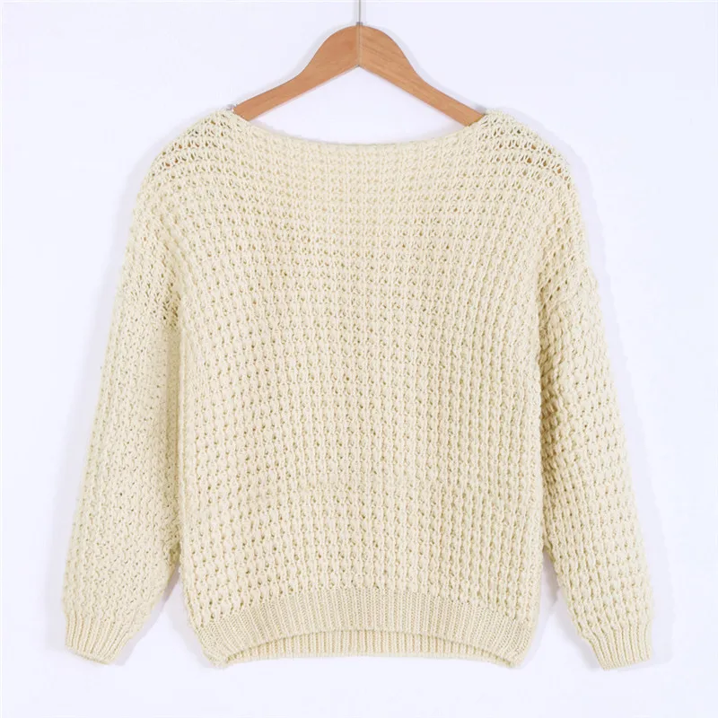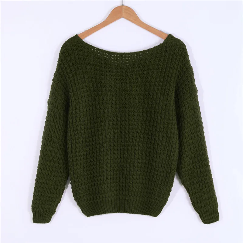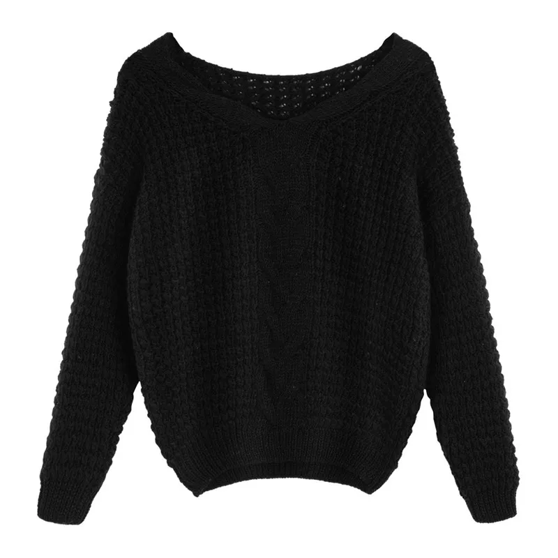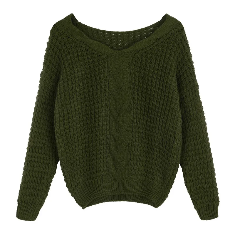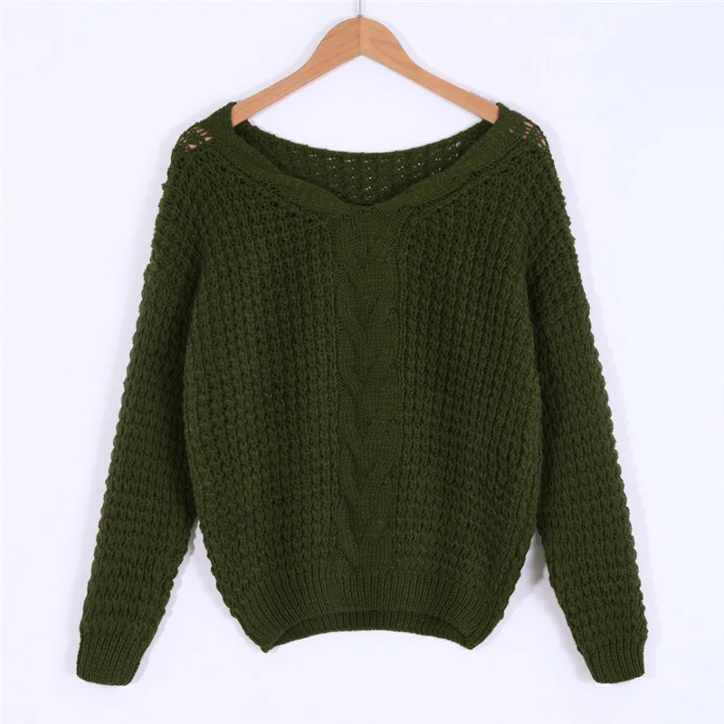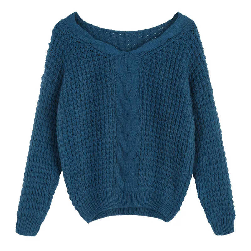 Fashion Women Solid V-Neck Long Sleeve Pullover Loose Thickened Sweater