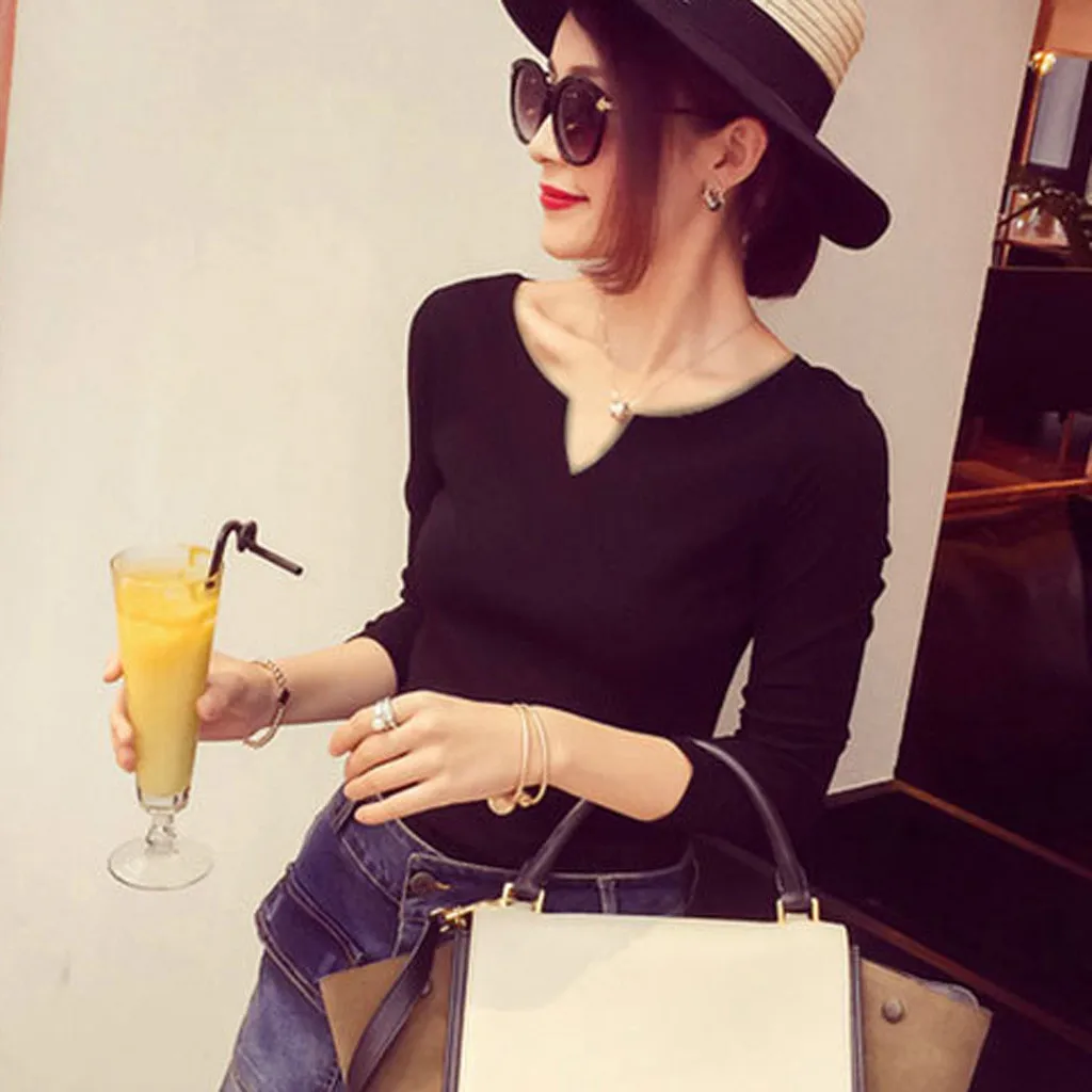 Особенности:Одежда с длинными рукавами, ОднотонныйС v-образным вырезом; Одежда,Стильный и модный дизайн,Весна, осень и зимаПовседневные топы.
