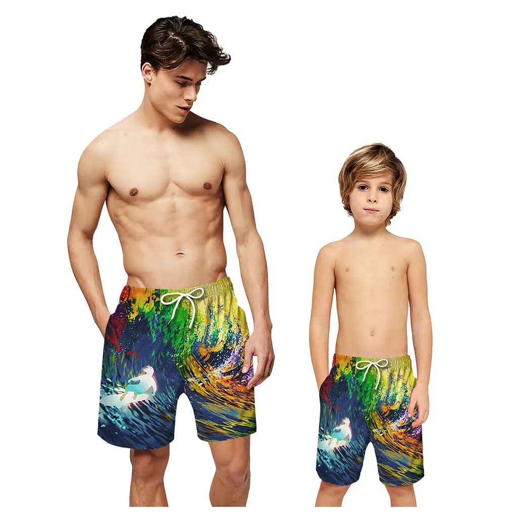 Мужские пляжные шорты с 3D принтом, быстросохнущие летние мужские пляжные шорты Siwmwear для родителей и детей, мужские плавки, пляжные шорты
