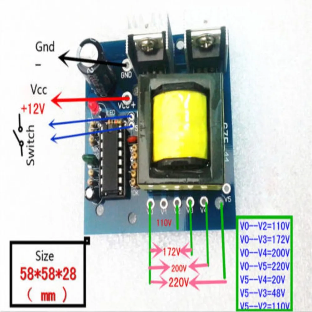 Особенности: 1. Плата представляет собой высокочастотную квадратную волну переменного тока на выходе, как правило, Индуктивная электрическая лента не может "растворы, трансформатор катушки fen и т. Д. 2. Возьмите небольшую нагрузку (светодиодные фонари, зарядное устройство для телефона, DVD телеприставка и т. Д.), подключенную к выходному напряжению рекомендаций, например, низкая передача: 172 в или 200 В. 3. Рекомендуется загружать большие рабочие часы (≥ 100 Вт) для увеличения теплоотвода. 4. Питание не может быть изменено. Другой источник питания и шнур питания должны быть достаточно большими. 5. Не перегружайте и не выходите из короткого замыкания. 6. Измерения выходного напряжения на частоте будут отображаться выше (не является верным, не является фактическим напряжением). Описание: 1. Это 150 вт автомобильный DC 12V к AC 110V 220V инвертор питания зарядное устройство конвертер Boost Board модуль. 2. Тонкая работа и хорошая производительность, стабильная и надежная, длительный срок службы. Технические характеристики: Цвет: синий Мощность: 150W Вход: DC12V Выход: AC 110V-200V-220V (как показано на фото). Также может 110v-0-110v. Ток покоя: 0.05A вокруг Форма выходного сигнала: частота квадратной волны Выходная частота: 20 кГц вокруг Защита: нет защиты Платы PCB размер 5,8*5,8 см, в основном используется для: электронные "сделай сам" Перед стадией инвертора. Проводка выходного напряжения по умолчанию выглядит следующим образом: "только для справки V0--V2 = 110V V0--V3 = 175V V0--V4 = 200V V0--V5 = 220V V5--V4 = 20V V5--V3 = 45V V5--V2 = 110V V4--V3 = 28V V4--V2 = 90V V3--V2 = 62V Посылка информации: Размер упаковки: 120x120x10 0 мм/4.68x4.68x3.9 дюймов Вес упаковки: 70 г/2,45 унций Общий пакет коробки Посылка включает в себя: 1x150 Вт Инвертор Boost монтажная плата Примите к сведению, что 1. Допускается погрешность в 1-2 мм из-за ручного измерения. 2. Цвет товара, отображаемый на фотографиях, может немного отличаться на мониторе вашего компьютера, так как мониторы не откалиброваны так же.