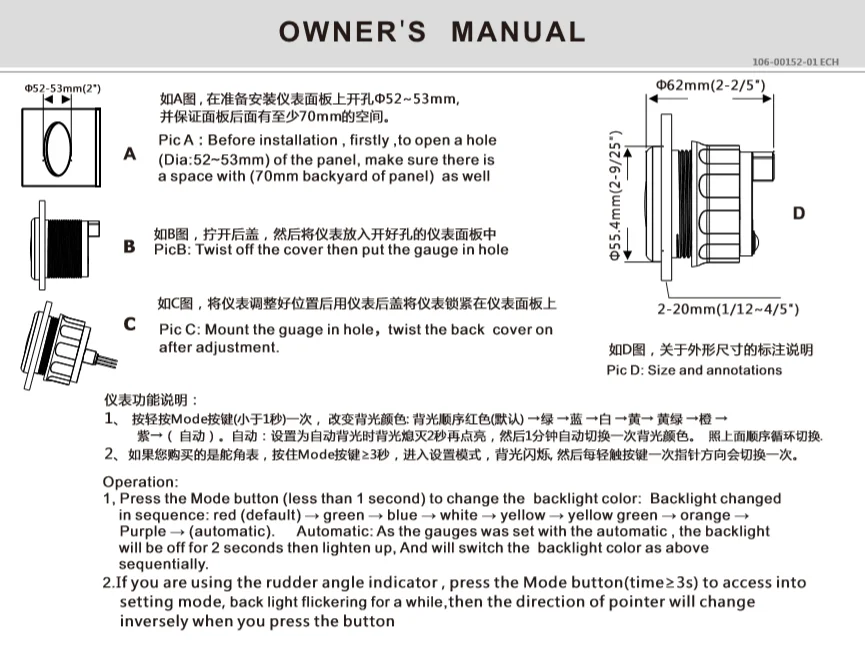 Подходит для всех видов модификации транспортного средства, точного отображения температуры воды, с инструкциями высокой точности, повторяемости и универсальности, надежности и стабильности, привод и управление относительно просты и так далее
