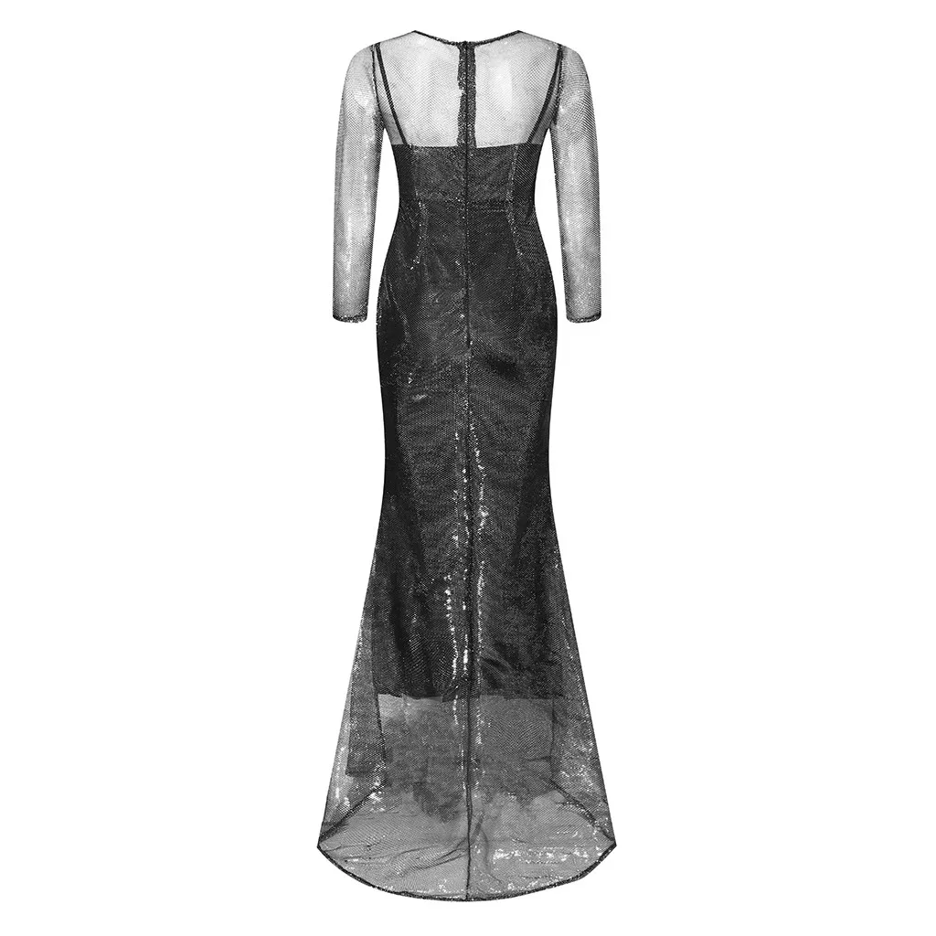 Женское однотонное блестящее Сетчатое платье с длинным рукавом, вечерние платья с рыбьим хвостом