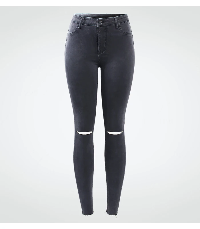 Женские джинсы с высокой талией рваные хлопковые стрейч повседневные