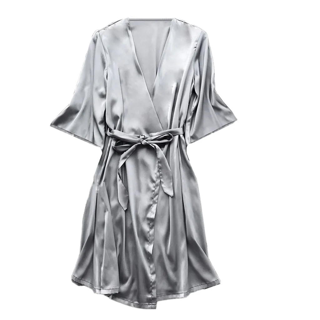 Женский Атласный халат с v-образным вырезом, шелковое кимоно, ночная рубашка для невесты