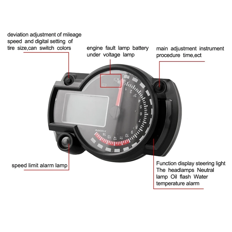 Тахометр, спидометр и зубчатый индикатор объединены в один, высокопроизводительный комплект для мотоцикла.
