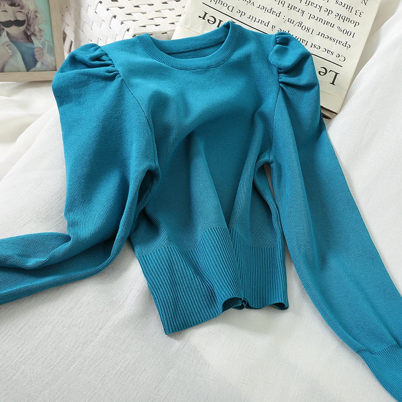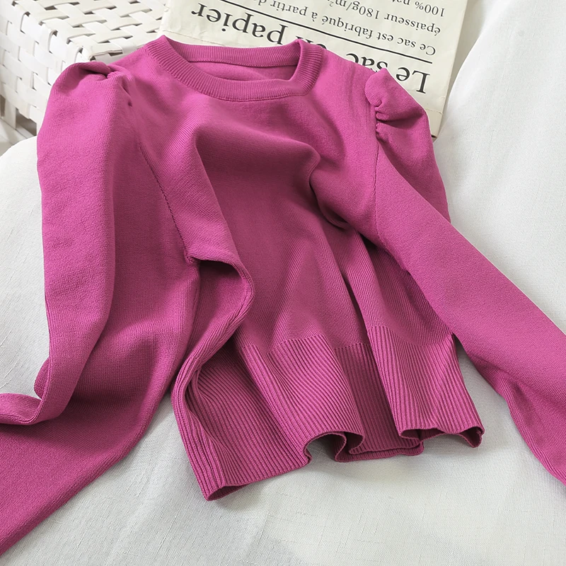 Свитер женский свободный с длинным рукавом в полоску круглым вырезом на весну и