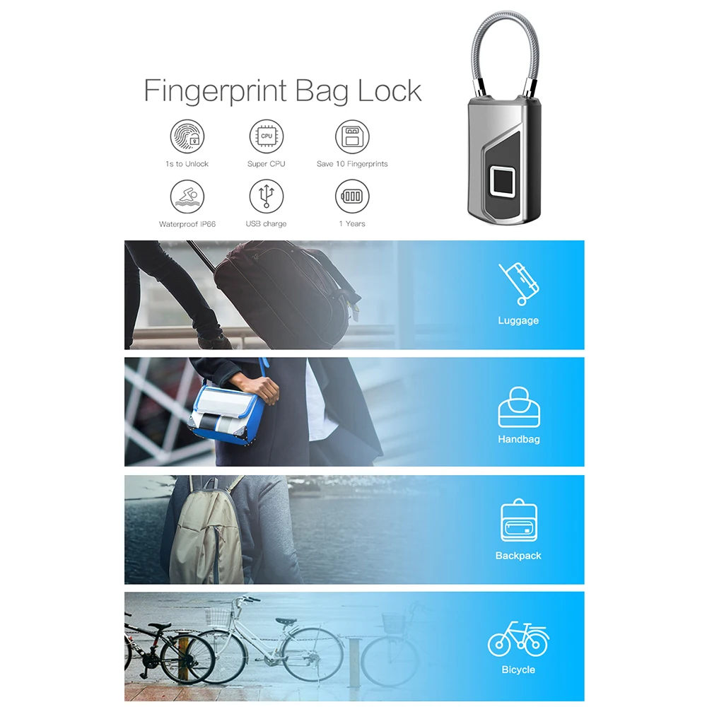 Водонепроницаемый БЕСКЛЮЧЕВОЙ портативный смарт-замок отпечатков пальцев замок Противоугонный Автомобиль Мотоцикл Велосипед Безопасности Противоугонный дверной чемодан Lugg