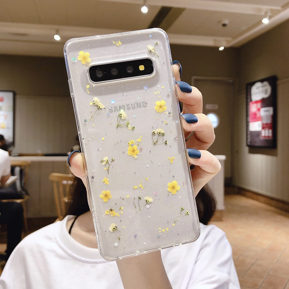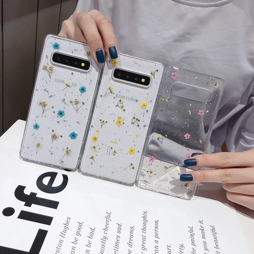 LOVECOM чехол для телефона Samsung Galaxy Note 10 S10 S10e S8 S9 Plus Note 8 9 настоящий высушенный цветок мягкая эпоксидная прозрачная задняя крышка подарок