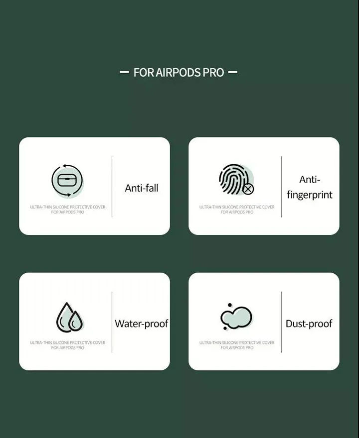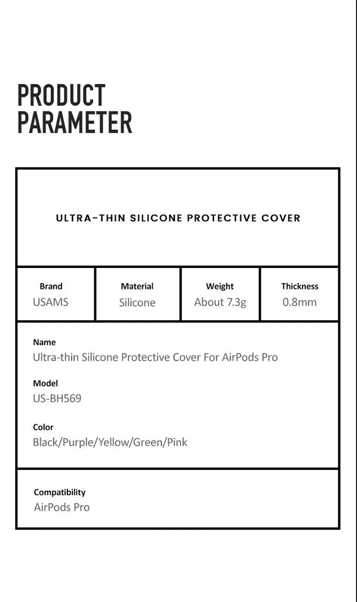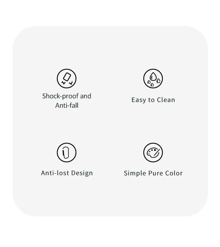 1. Экологичный силикон, Ультратонкий и эластичный. 2. Полная защита, защита от падения и царапин. 3. Запасной разъем для зарядки, водонепроницаемый. 4. Одобренный сплит-дизайн, удобный в использовании.