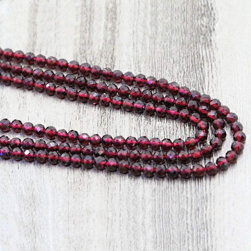 〼 Material: Natural Garnet beads stone 〼 Shape:Faceted round Bead 〼 Number of size : 2mm about 180 pcs/strand 3mm about128 pcs/strand 4mm about 72 pcs/strand 〼 Usage : Bead for bracelet, necklace or other crafts Order more than 2 pieces , Discount 3% OFF Note:The price is for 1 share