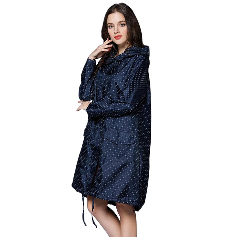 Промо-акция! Модный женский плащ, дышащий Женский Длинный плащ, портативный водонепроницаемый плащ, синий с принтом в горошек, XL
