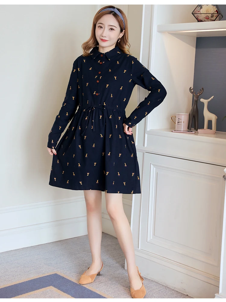 Весенне-осенние платья vestidos для беременных; Одежда для беременных женщин; Повседневное платье с высокой талией и длинными рукавами для беременных