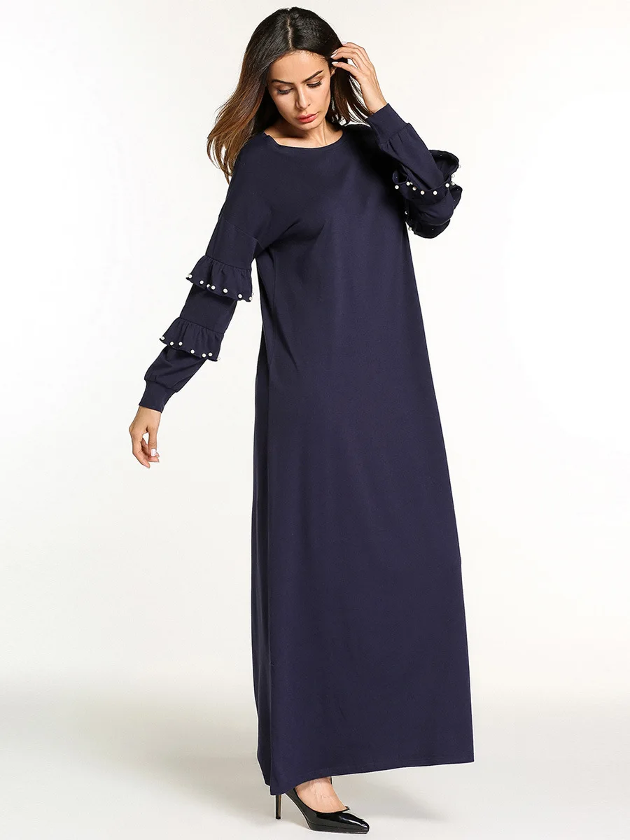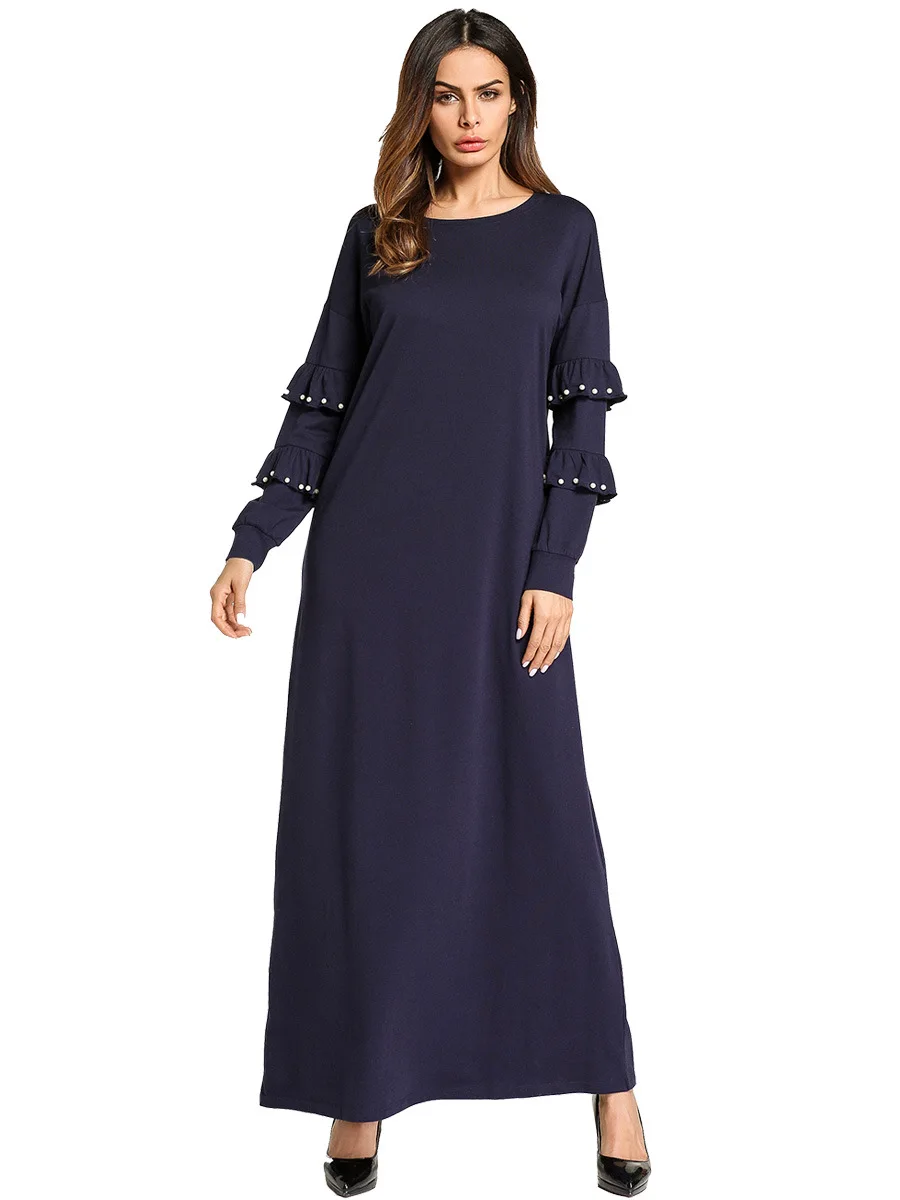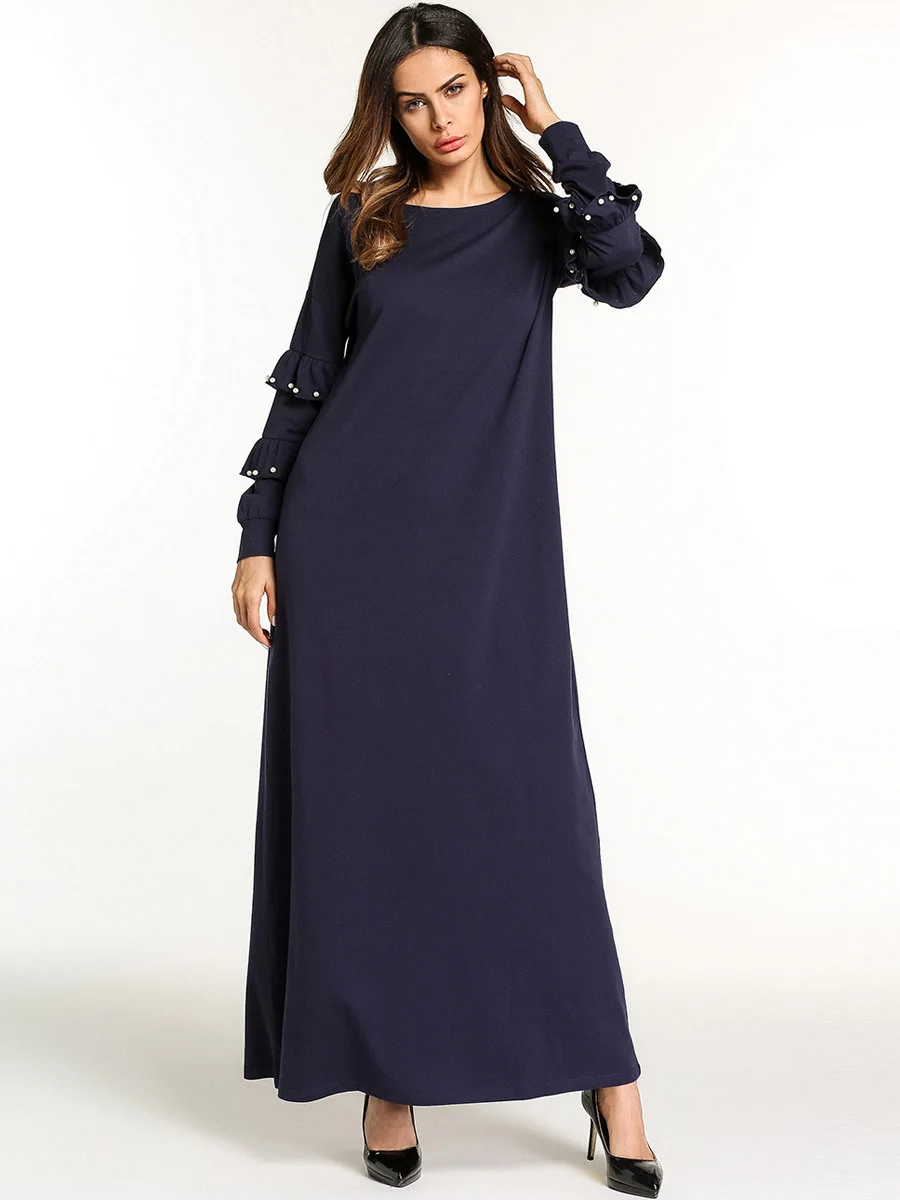 Платье Макси женское длинное с длинным рукавом и кружевом в мусульманском