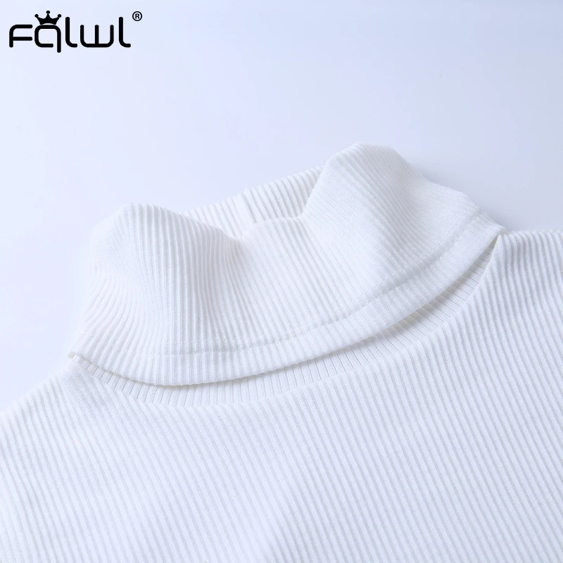 FQLWL, Осень-зима, пушистая водолазка, белый ребристый вязаный свитер, женский джемпер, мех, сексуальный, облегающий женский свитер, пуловер, топы