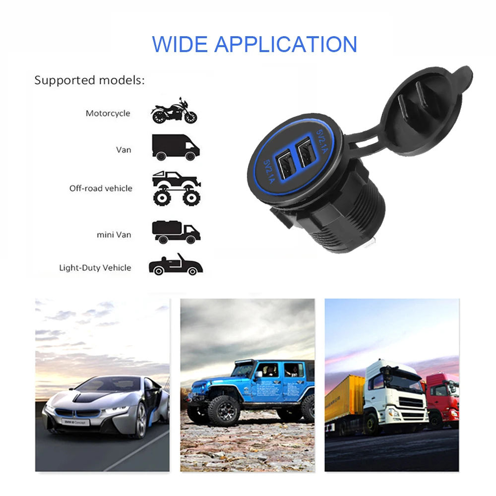 * 12 В-24 В розетка для автомобильного прикуривателя, подходит для различных стандартных автомобильных адаптеров.