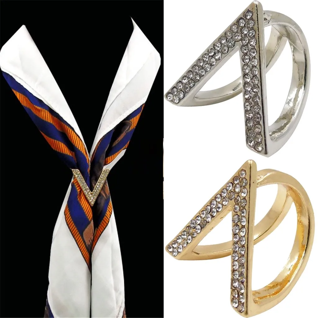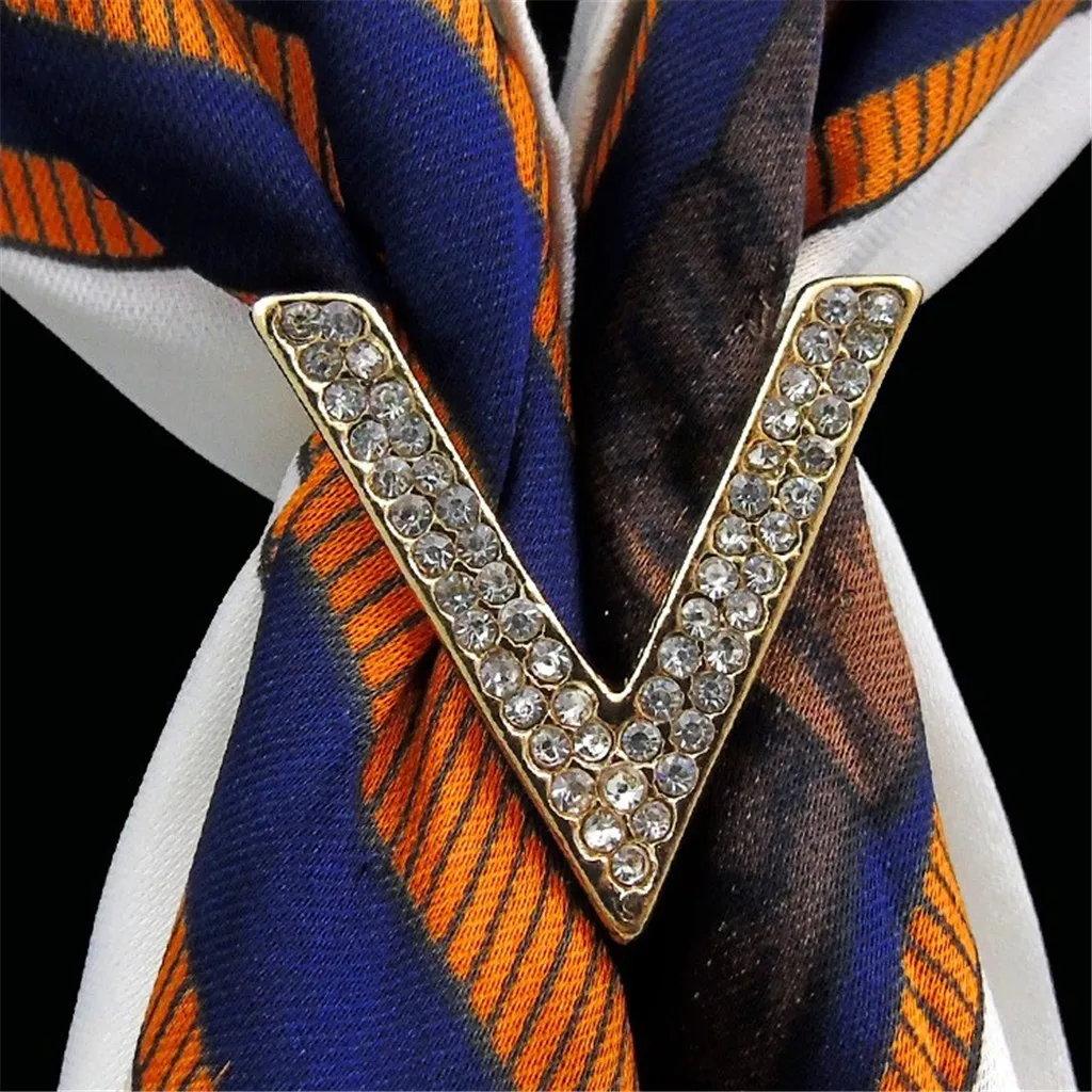 Fashion Women Diamond Shiny Metal V Shape Elegant Beauty Useful Scarves Buckle