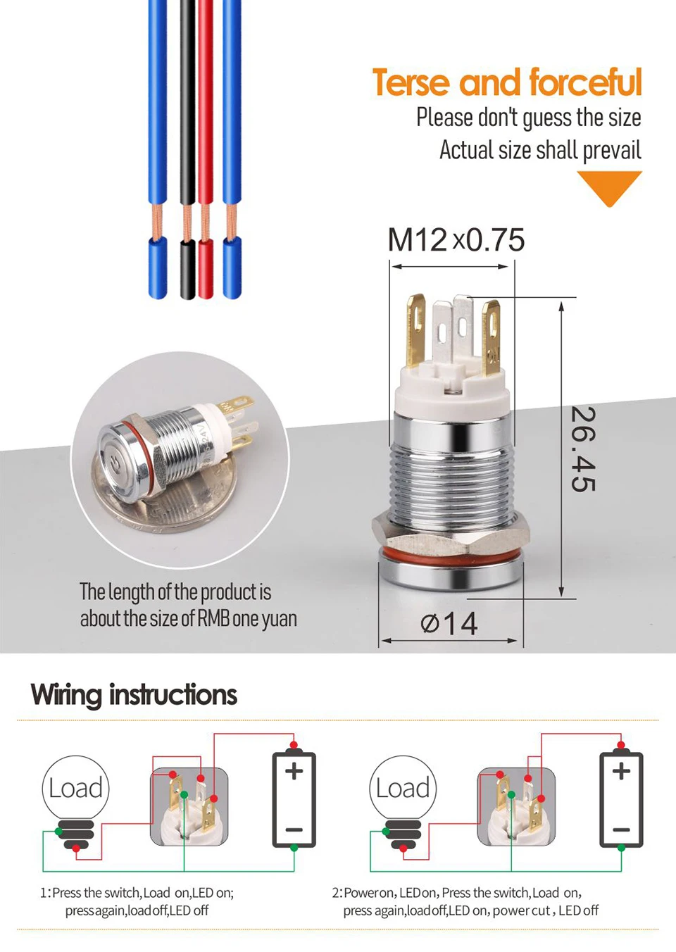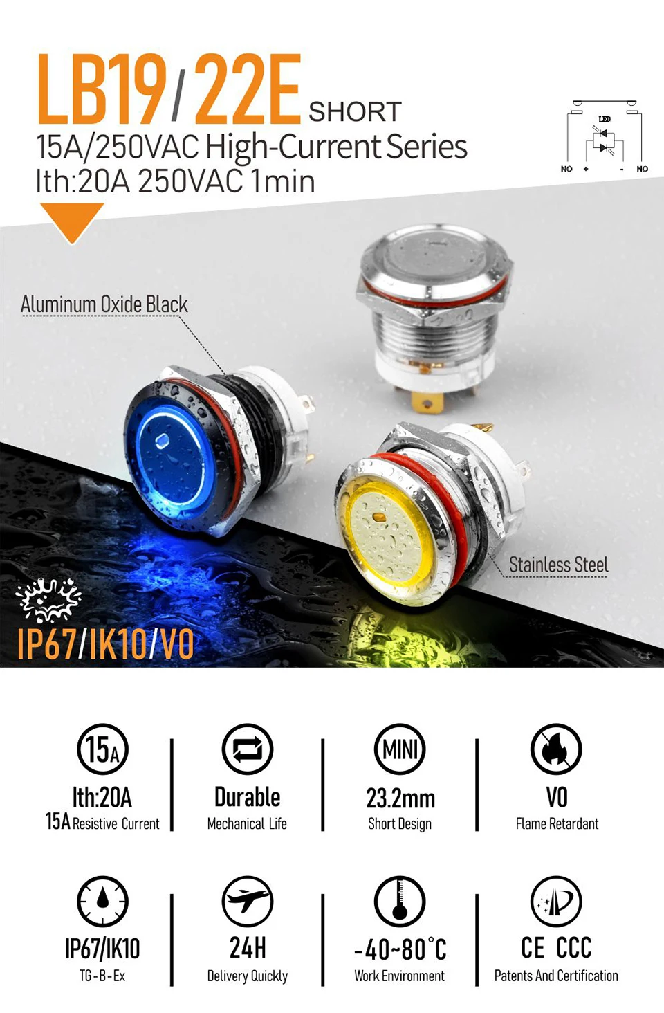 1,12 мм/16 мм/19 мм/22 мм кнопочный переключатель, высокий ток.