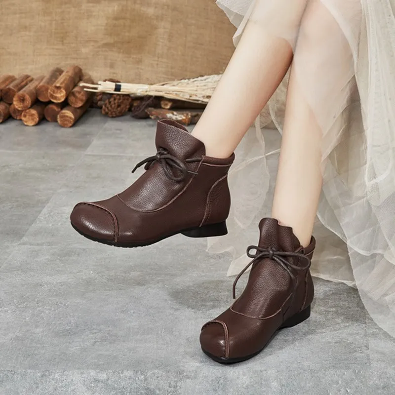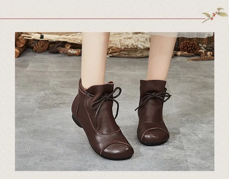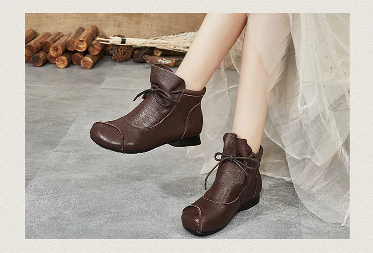 Женские кожаные ботинки с круглым носком Осень-зима 2021 | Обувь