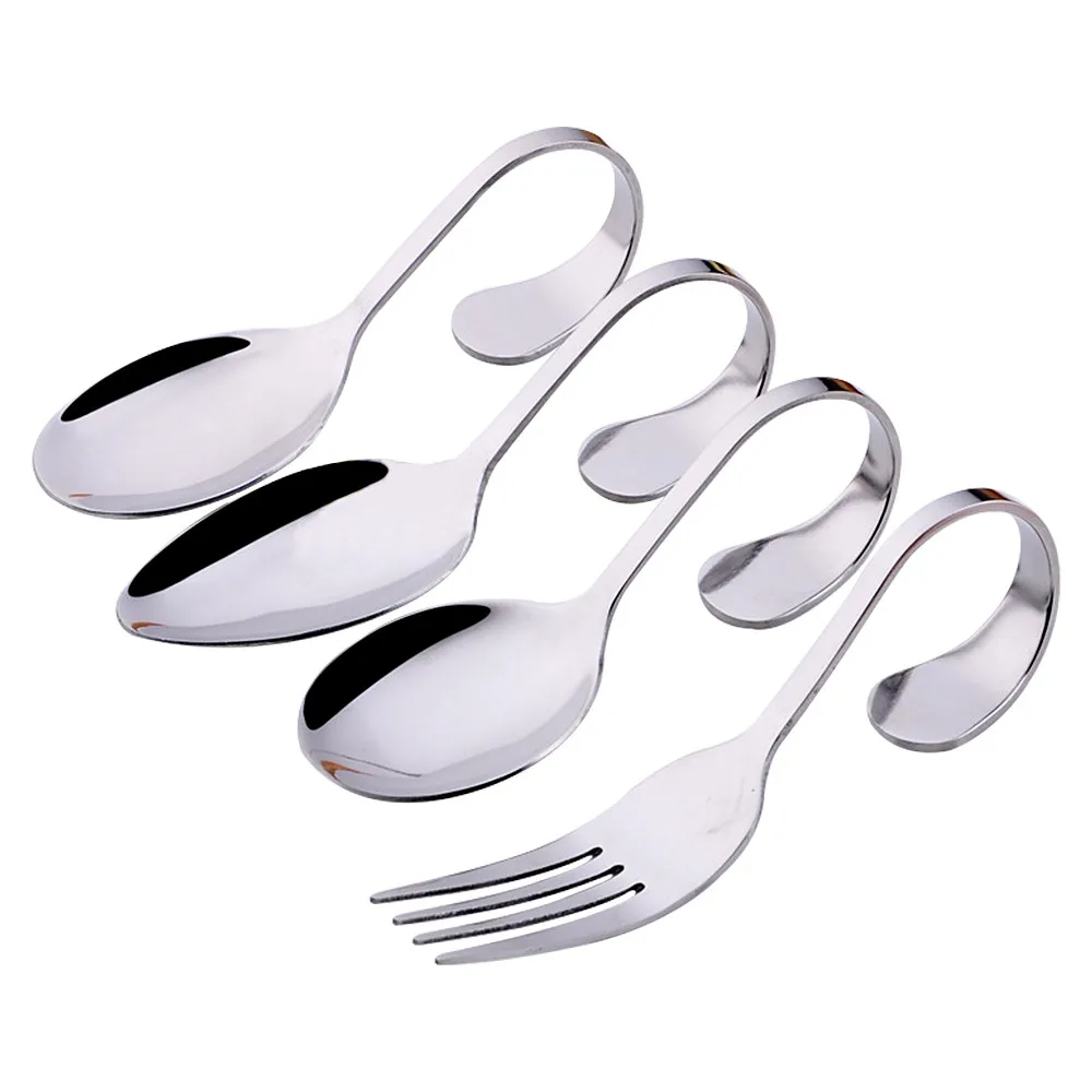 1 шт., изогнутая ручка из нержавеющей стали, художественная вилка для салата, круглая ложка, ложка для супа