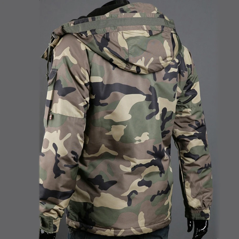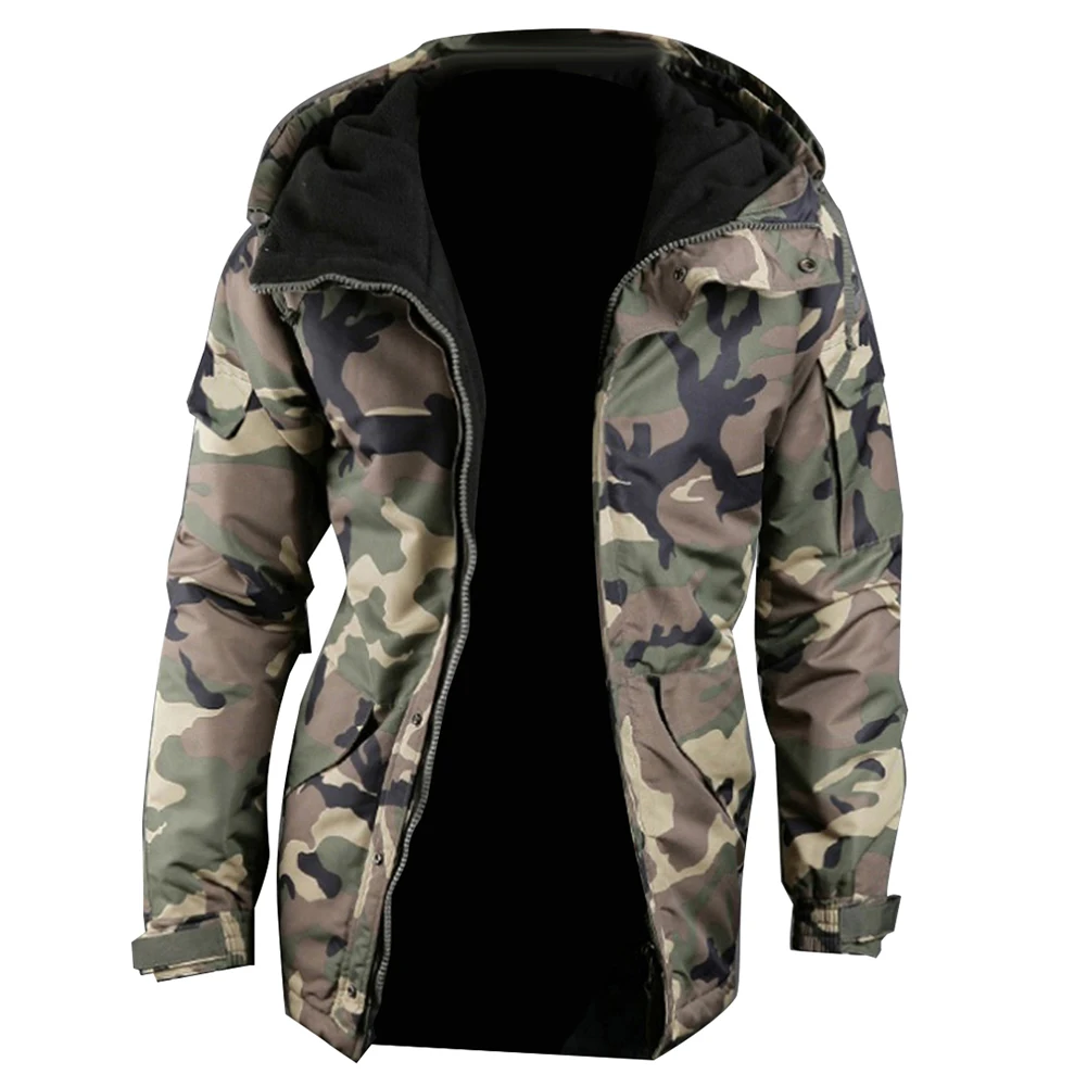 Модная зимняя теплая мужская куртка, пальто с камуфляжным принтом и карманами, куртка на молнии с длинным рукавом, пальто для мужчин, одежда