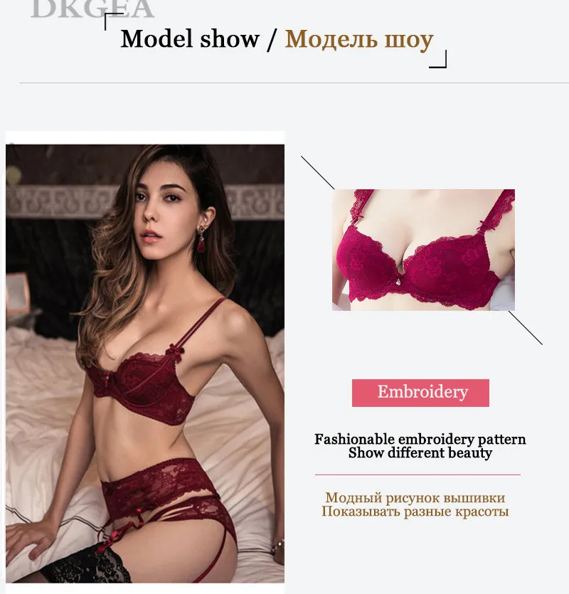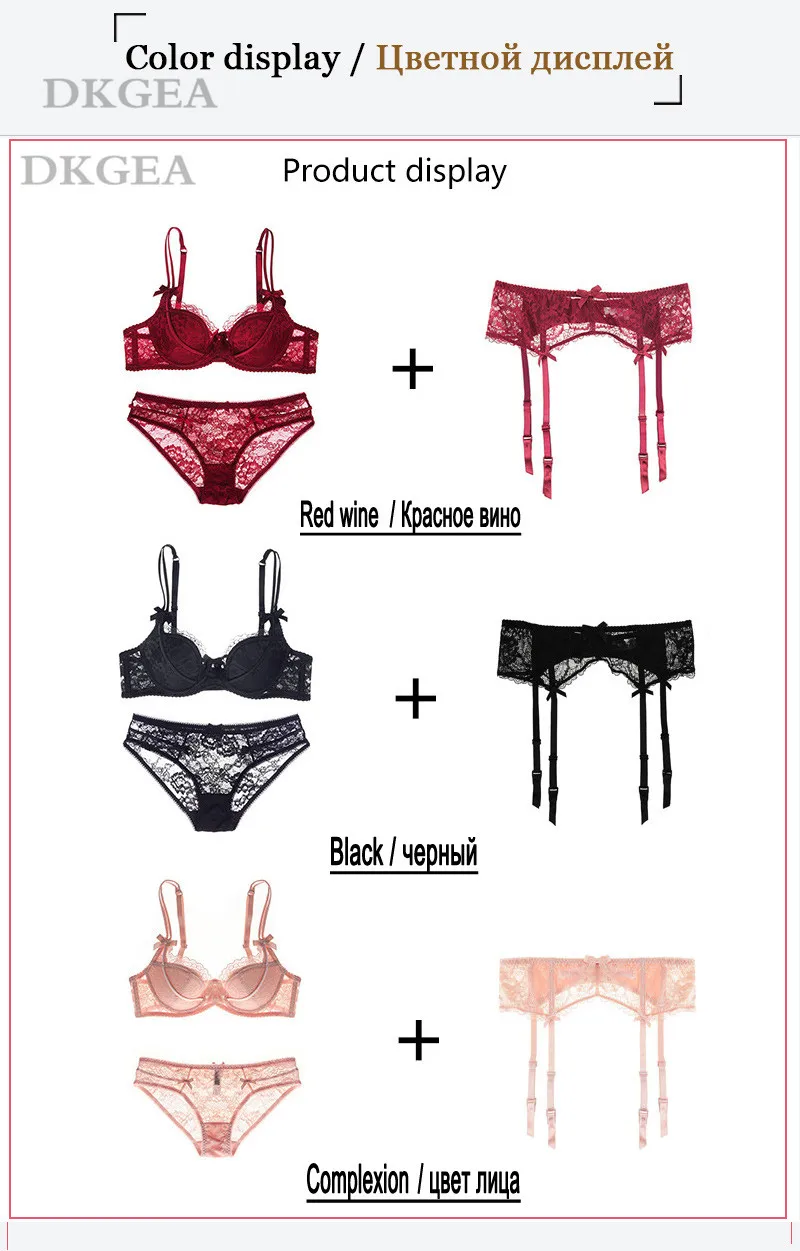 Этот сексуальный набор нижнего белья из трех частей включает в себя бюстгальтер, трусики и подвязки.