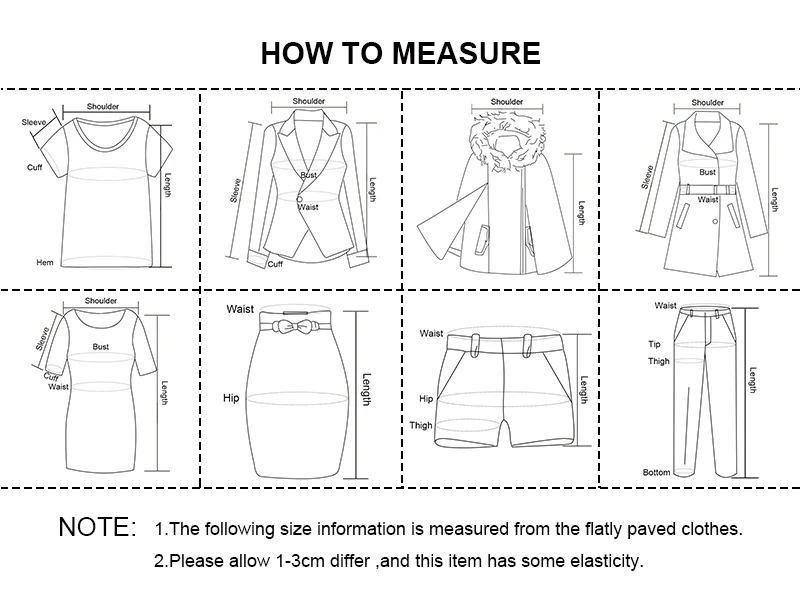 S ширина плеч:/длина рукава: 64 бюст: 92 Талия: 66 Общая длина: 80 M ширина плеч:/длина рукава: 65 бюст: 96 талия: 70 Общая длина: 81 L Ширина плеч:/длина рукава: 66 бюст: 100 талия: 74 Общая длина: 82 Примечание: 1 дюйм = 2,54 см, 1 см = 0,39 дюйма При измерении вручную допускается погрешность в 2-3 см, что является нормальным