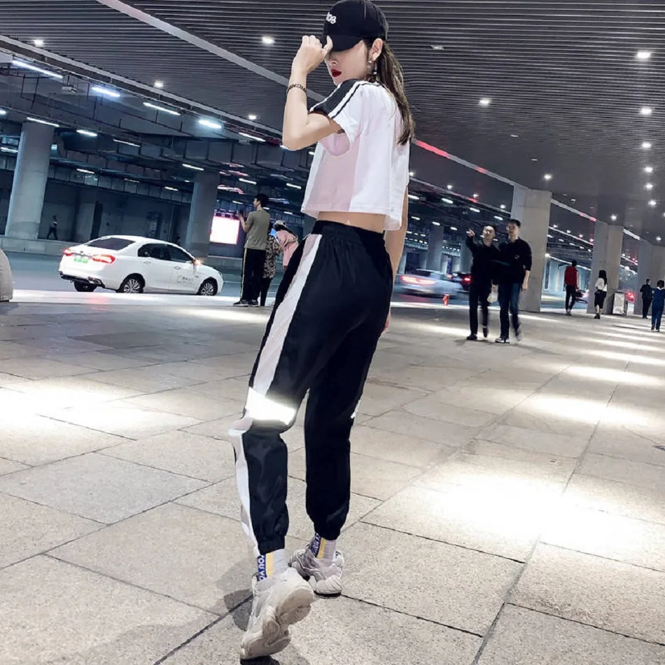Женский спортивный костюм, корейский стиль, свободный, большой размер, 2021, женская одежда, тренд, дикие, тонкие, в стиле хип-хоп, красивые спортивные штаны, шаровары