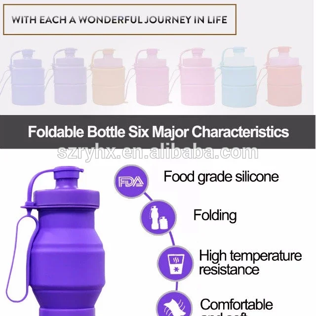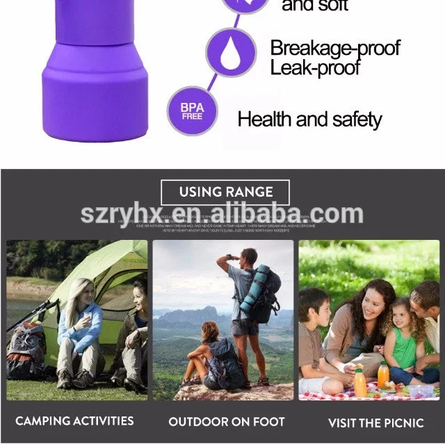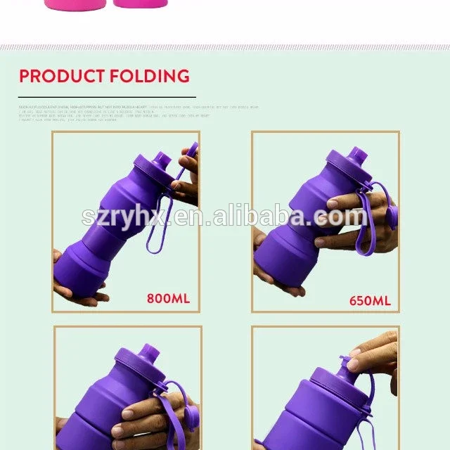 Особенности: Легко носить, вы можете сложить деформацию, легко принять. Продукт изготовлен из силиконового материала, не хрупкий, высокая температура до 220 градусов Продукт поставляется с крышкой ремешок один, легко носить с собой. Описание: Объем: 800 мл Цвет: красный, черный, фиолетовый, морской синий, небесно-голубой, розово-красный, розовый Материал: силикон + ПП Размеры: 25,5x7,8 см и 13x7,8 см