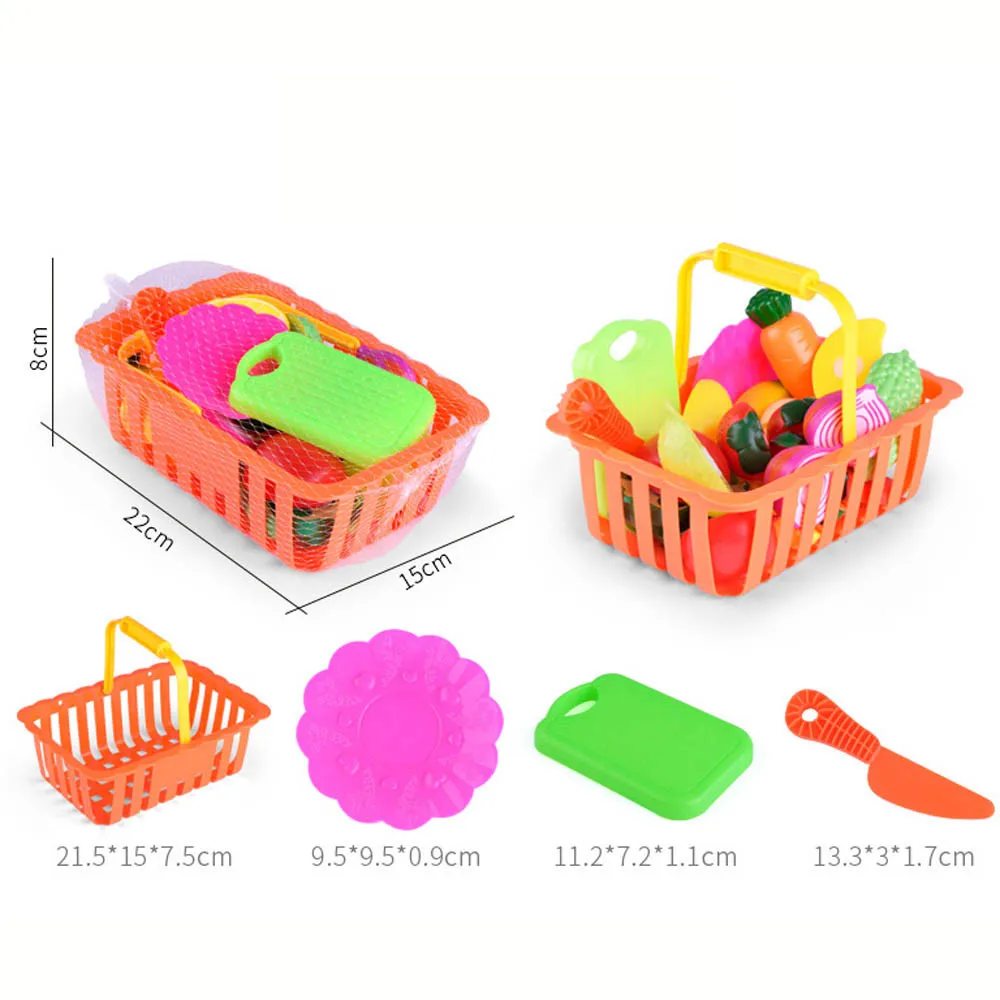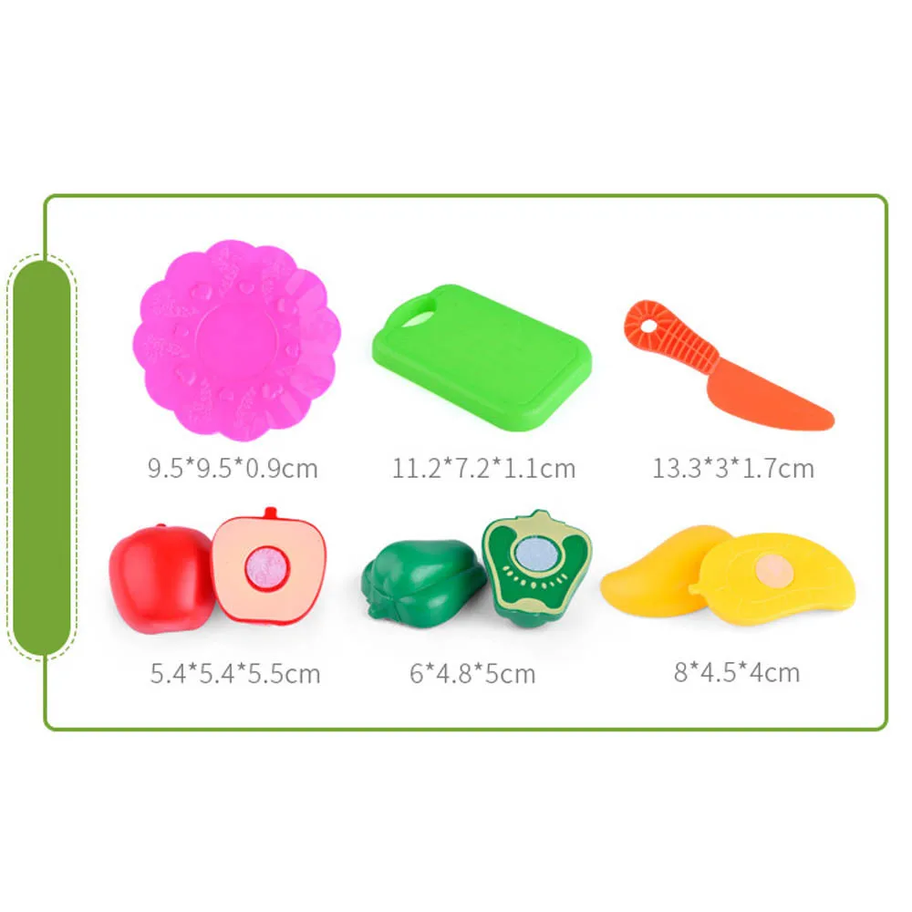 Поставляется с пластиковым ножом для детей, чтобы разрезать игрушки фруктов и овощей
