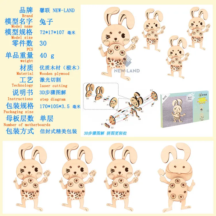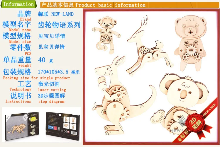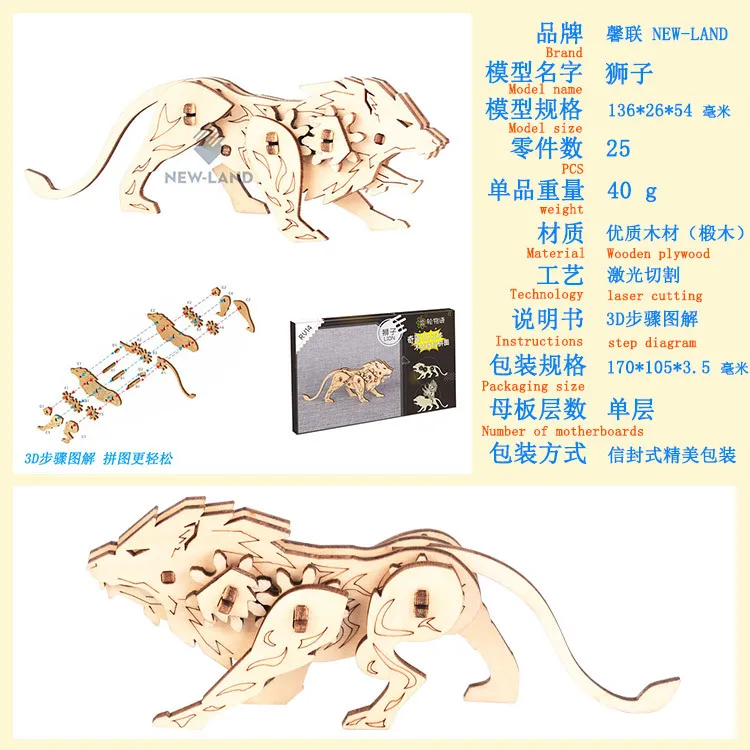 Многослойный пазл Детские деревянные игрушки животные картонный
