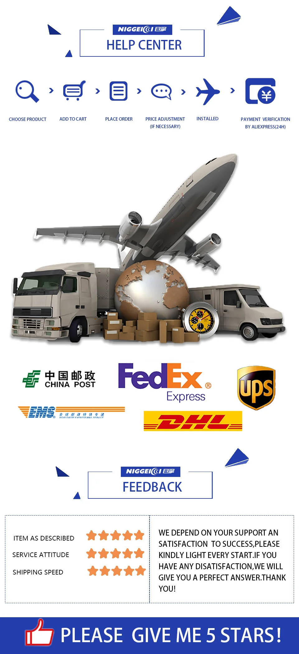 В: как долго я могу получить свой заказ? О: Мы отправим заказ в течение 72 часов после оплаты. Как правило, мы используем авиапочту Китая или AliExpress доставку. Время доставки в разных странах является различным, но обычно 21-49 дней, если вы хотите получить его быстрее, пожалуйста, свяжитесь со мной. В: Что делать, если посылка потерялась или была повреждена при плохой транспортировке? О: Прежде всего, мы приносим извинения за эту ситуацию. Мы проверяем каждую посылку перед отправкой. Если посылка была повреждена или потерялась в пути. Пожалуйста, не открывайте спор напрямую. Пожалуйста, свяжитесь со мной, и я отправлю вам посылка ЛКУ или полностью верну вам деньги. В: есть ли небольшой подарок посылка? Ответ: Вообще говоря. У нас нет подарков в упаковке. Если вам нужен небольшой подарок, пожалуйста, свяжитесь со мной. В: я занимаюсь прямой поставкой, есть ли в посылка какие-либо счеты или рекламные объявления? О: мы не поместим ничего, кроме самого товара посылка. Пожалуйста, не беспокойтесь об этом. В: Могу ли я изменить адрес или номер телефона после оплаты заказа? О: вы можете связаться со мной, чтобы изменить информацию перед отправкой, но пока мы отправляем заказ, информация не может быть изменена. Поэтому, пожалуйста, проверьте информацию перед оплатой.
