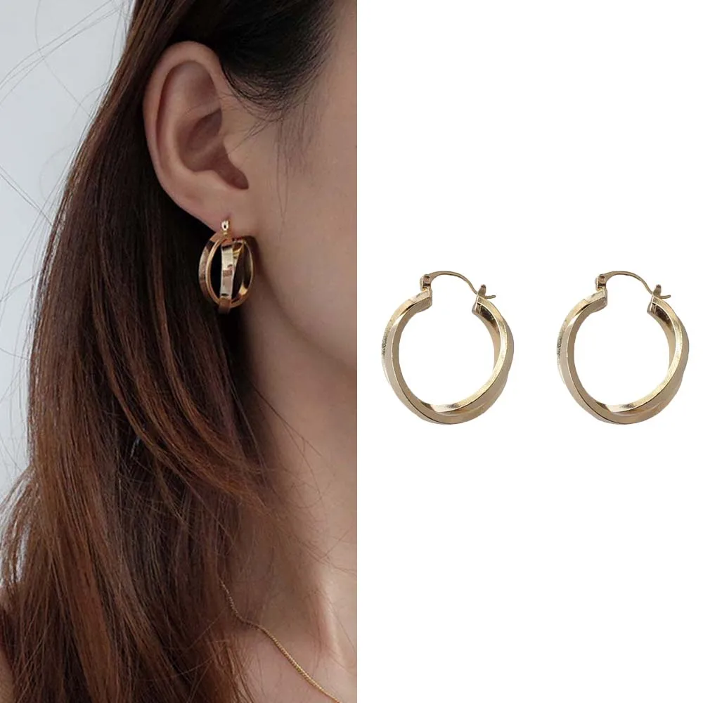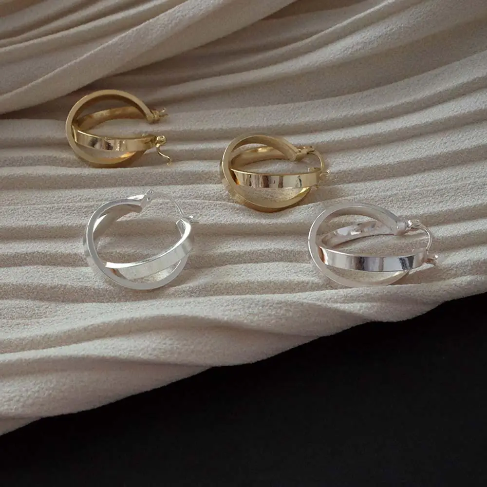 Двойные серьги-кольца, женские изысканные простые серьги-кольца, геометрические серьги с крестом, темпераментные трехмерные женские